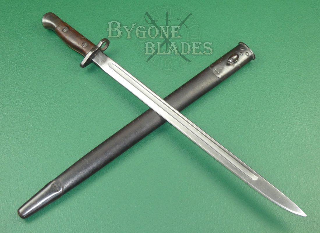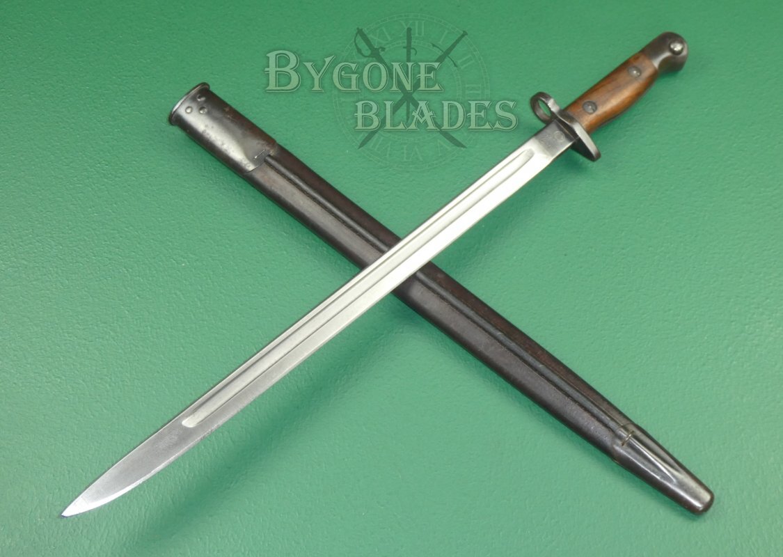 This British 1907 pattern bayonet was made by the Remington Arms Company in America in July, 1915. The first delivery from Remington to the UK was in July 1915.