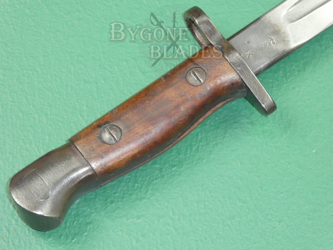 This is an excellent early example of a rare Remington made British P1907 bayonet.