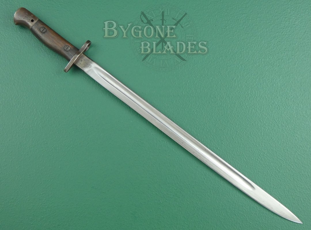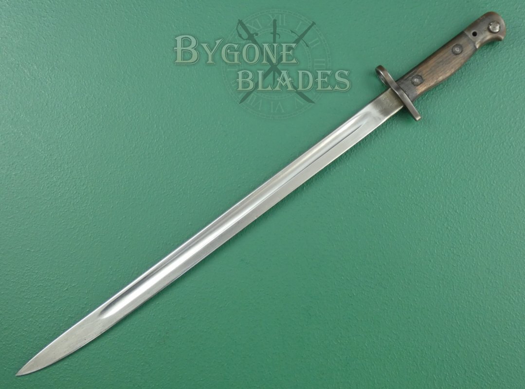 Iconic British WW1 Pattern 1907 bayonet made in November, 1918 by the Wilkinson Sword company. The bayonet is marked to the Royal Air Force. The R.A.F were officially established in January 1918. This is a rare, early RAF issued bayonet.