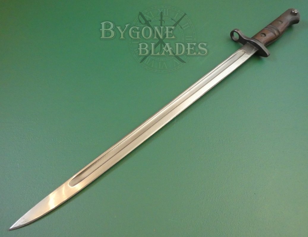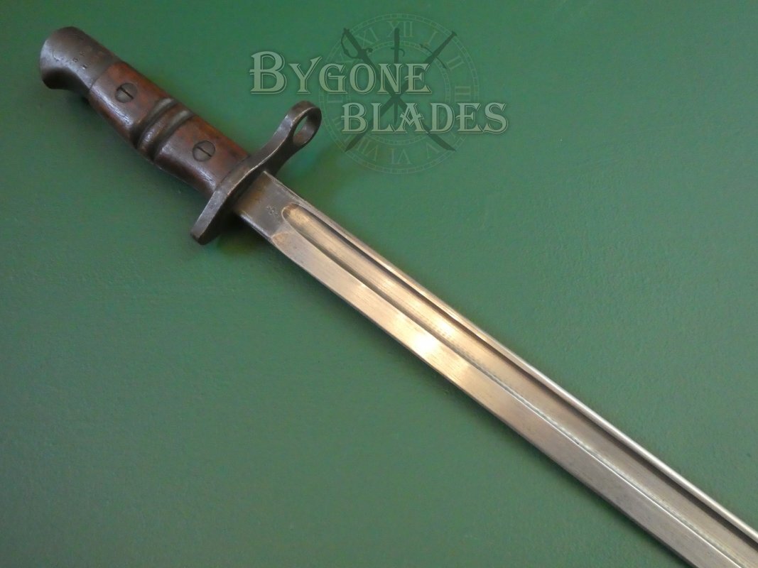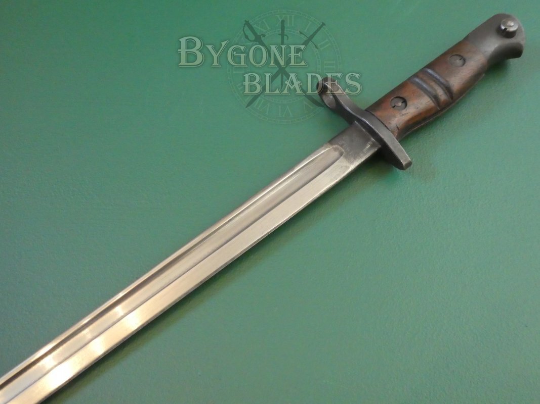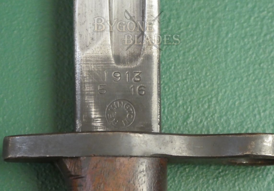 This British Pattern 1913 Mk 1 sword bayonet for the Pattern 1914 rifle is in fantastic condition. The P1913 bayonet was officially introduced into British service on the 21st June 1916 and was made under contract in the USA by Remington and Winchester.