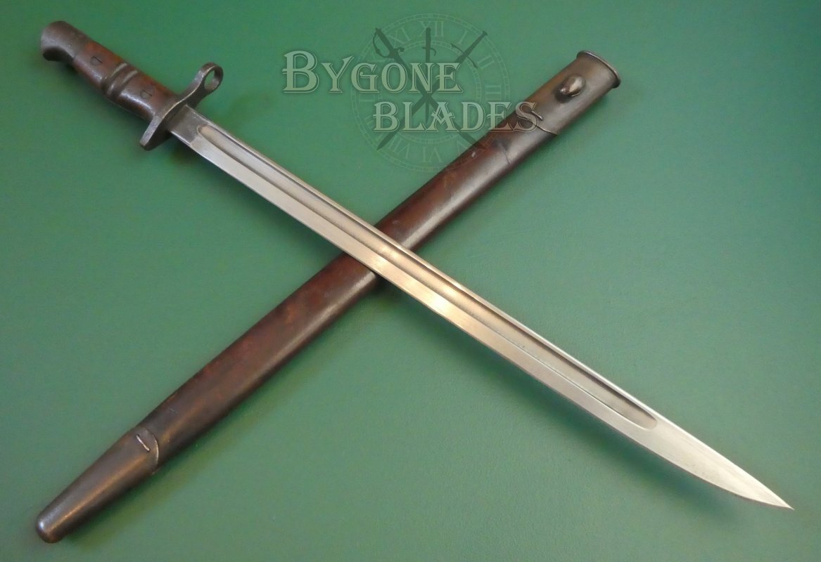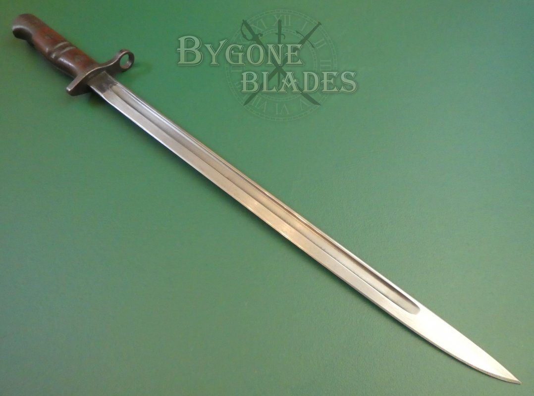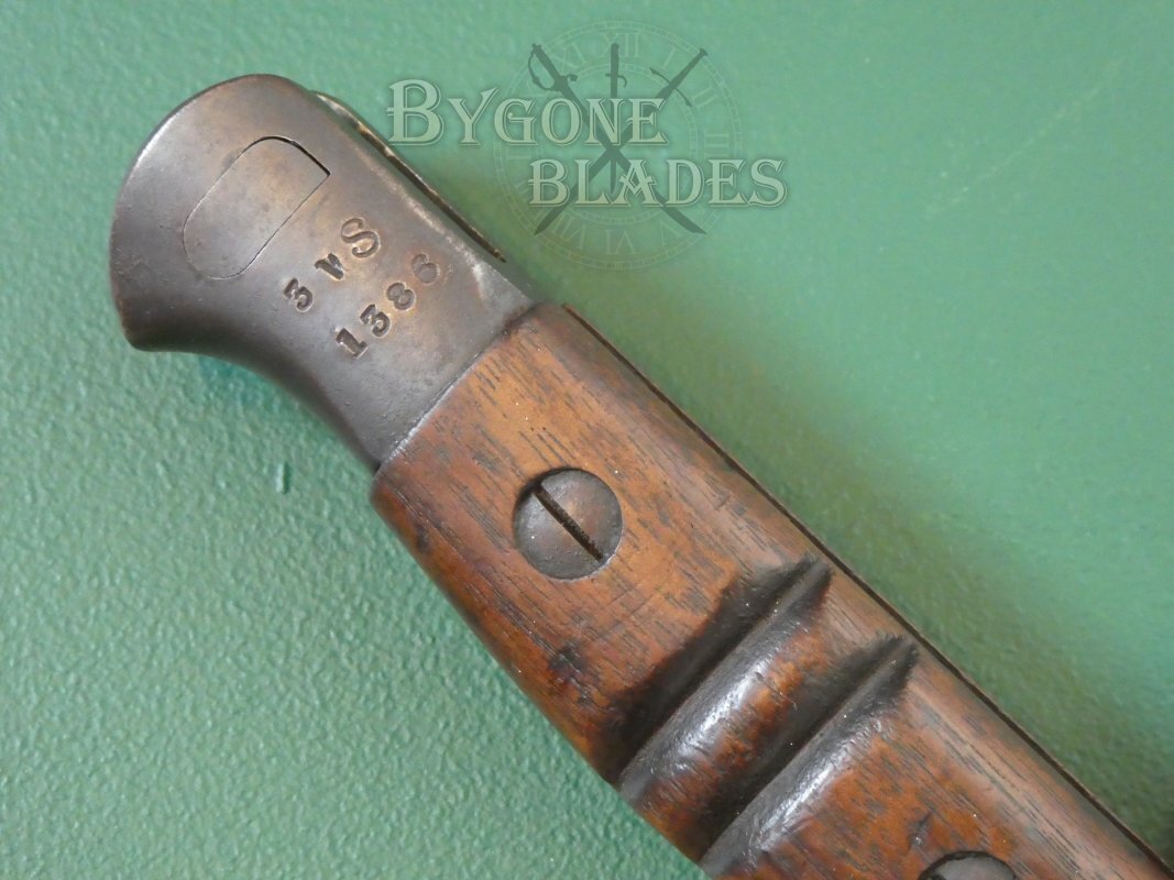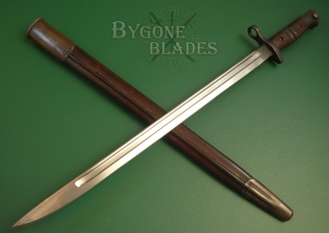 This British Pattern 1913 Mk 1 sword bayonet for the Pattern 1914 rifle is in fantastic condition. The P1913 bayonet was officially introduced into British service on the 21st June 1916 and was made under contract in the USA by Remington and Winchester.