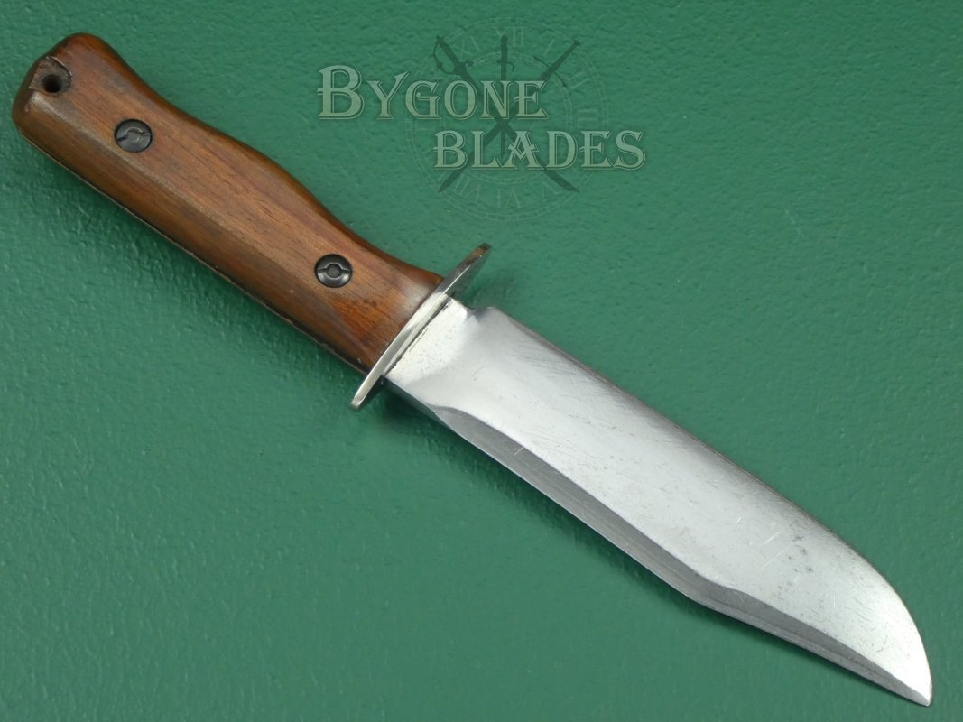 This knife was formerly the property of a British Royal Marine and is believed to have been available to serving Royal Marines as a private purchase. The lack of Broad Arrow and NATO markings supports this knife as having been purchased as a personal weapon.
