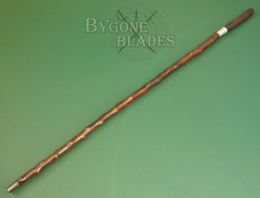 Late Victorian British sword/dagger cane made from Irish Blackthorn and with a nickel silver collar.
