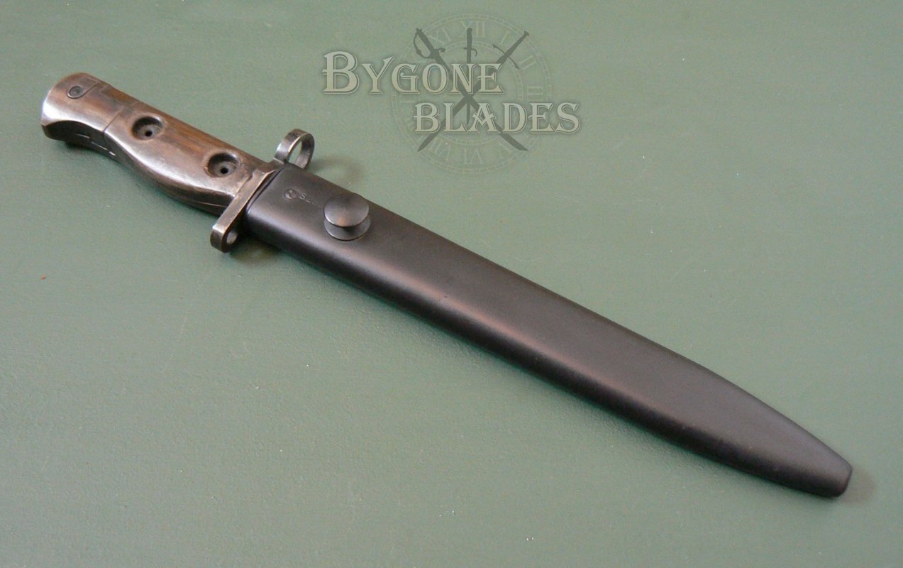 The bayonet is complete with its Mk5 scabbard. The Mk5 scabbard was used for several British bayonets, from the Mk5 bayonet through to the L1A3 from around 1940 into the 1980’s. The scabbard is in excellent condition.