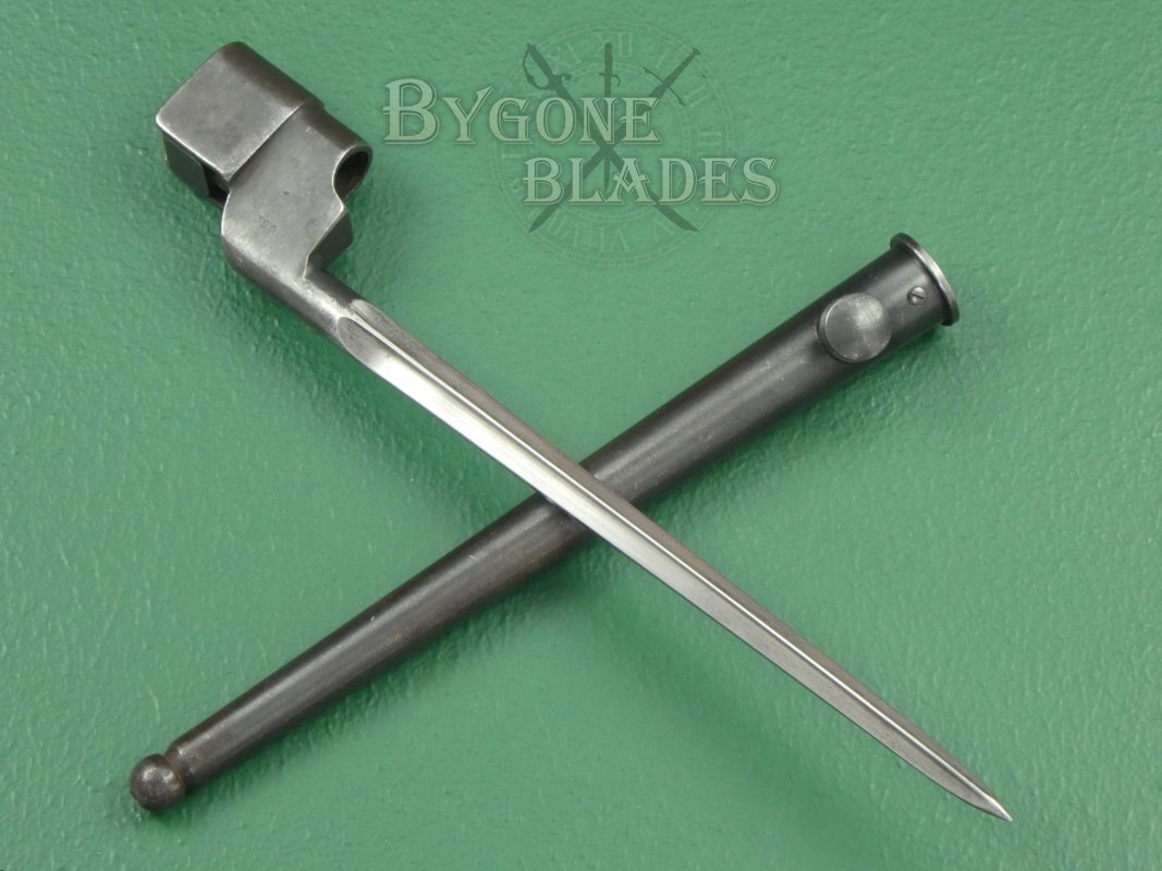 This rare bayonet is in excellent condition, nicely marked and complete with its No.4 Mk I scabbard.
