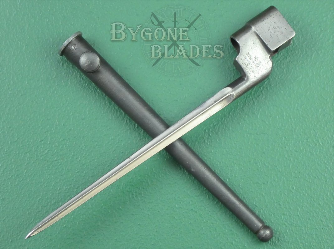This rare bayonet is complete with its correct No.4 Mk I scabbard.
