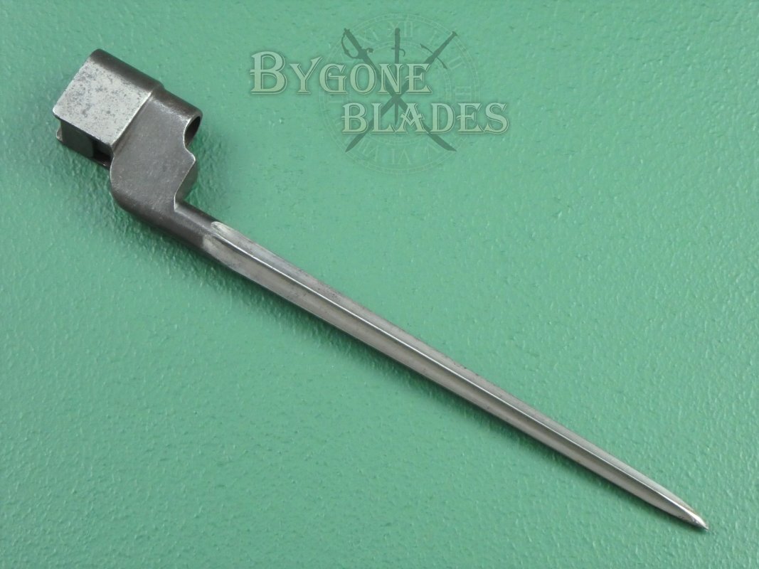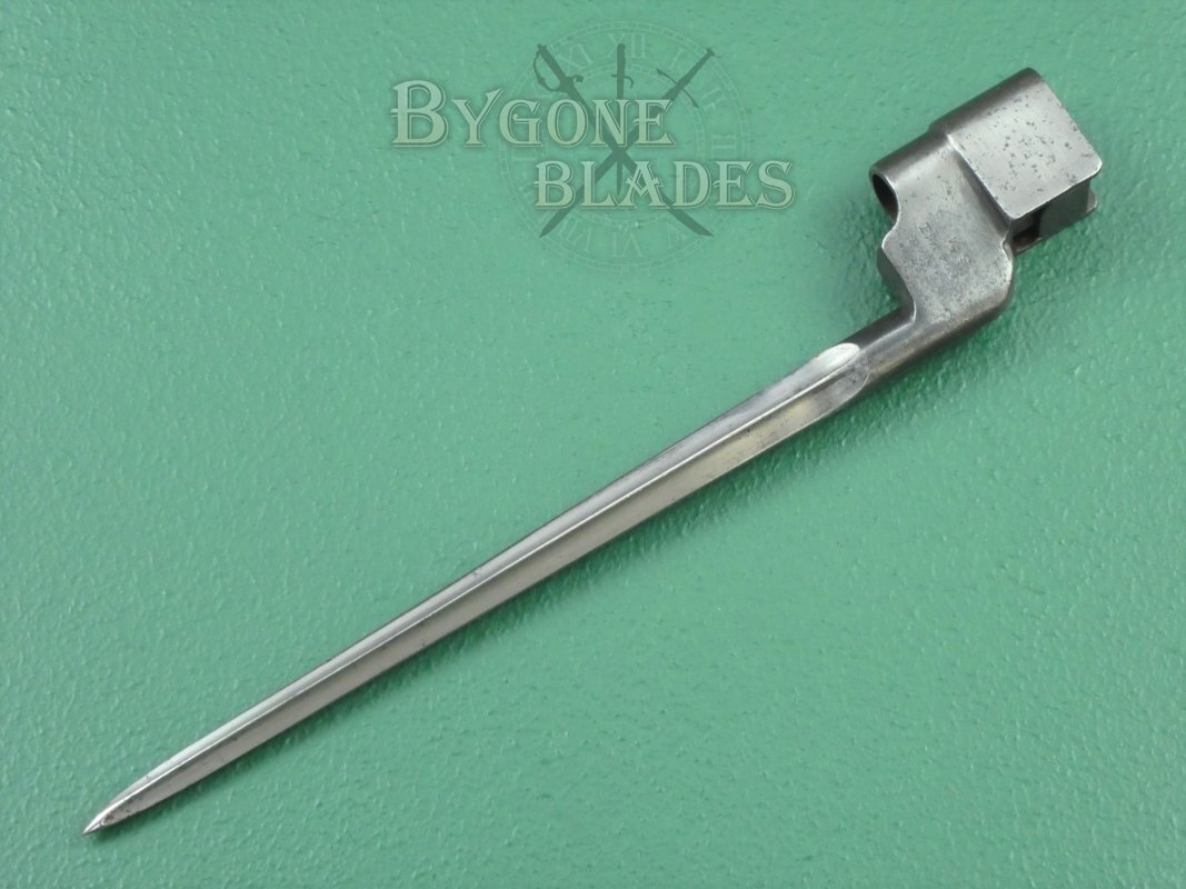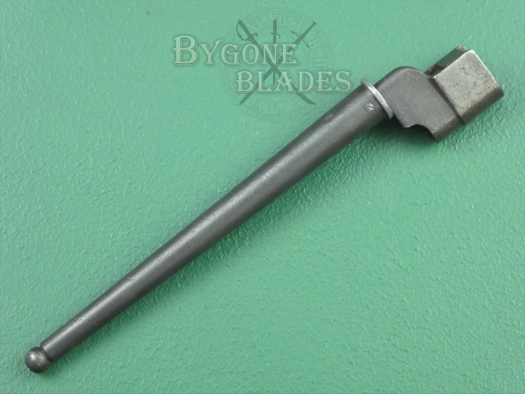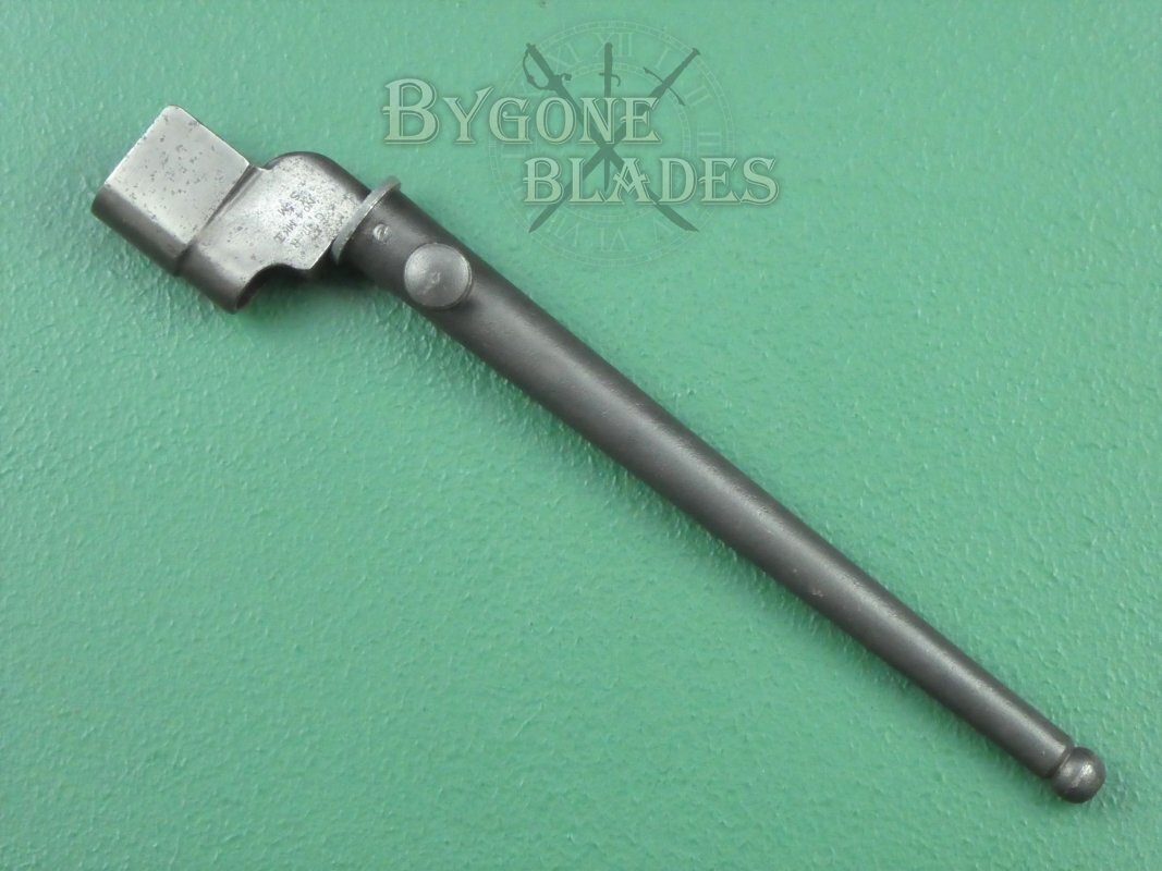 Original British No.4 Mk I, early production cruciform bayonet for the Lee-Enfield No.4 Mk I Rifle. The No.4 Mk1 bayonet was only produced from late 1941 and into the early months of 1942. The sole maker was the Singer Manufacturing Co., at their Clydebank plant near Glasgow, Scotland.