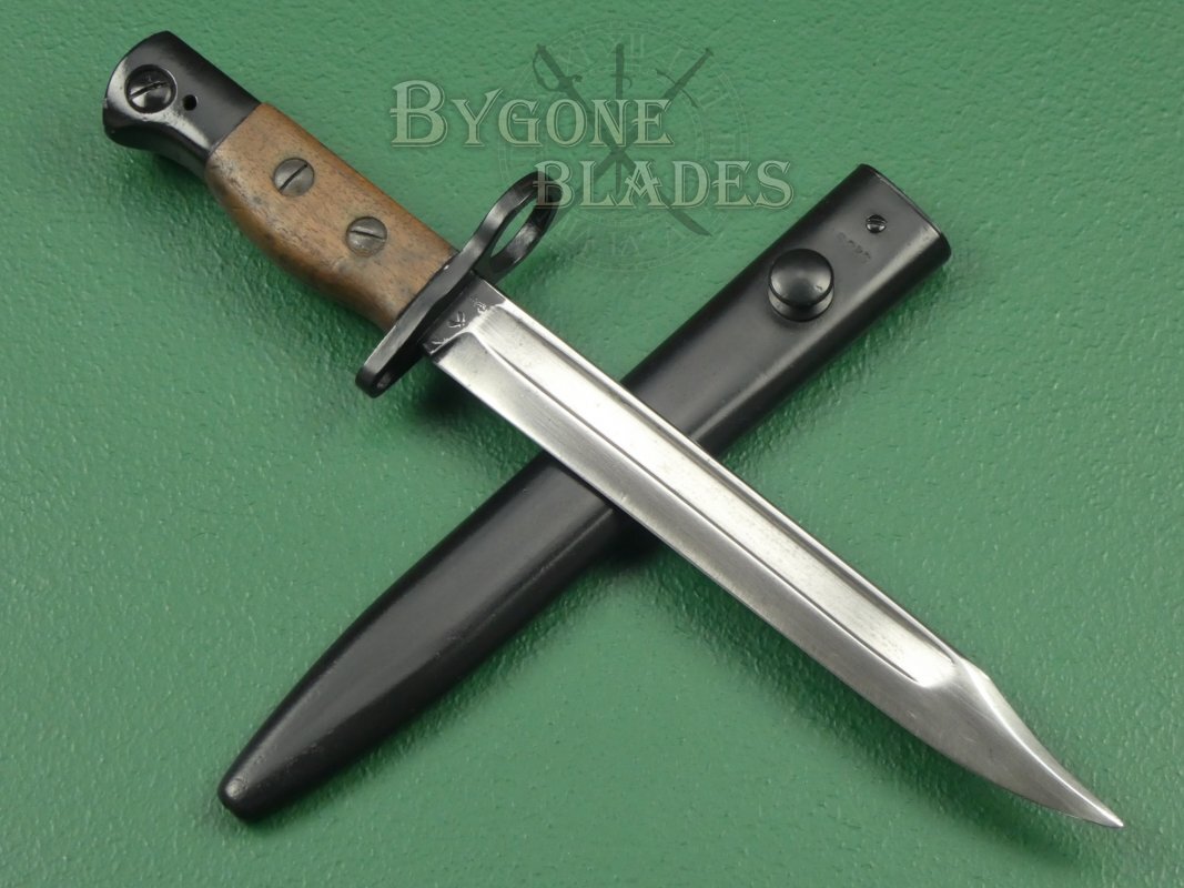 Production of the No.5 bayonet began in March 1944, and finished in December 1947. Four companies were initially contracted to produce the No.5 bayonet.
