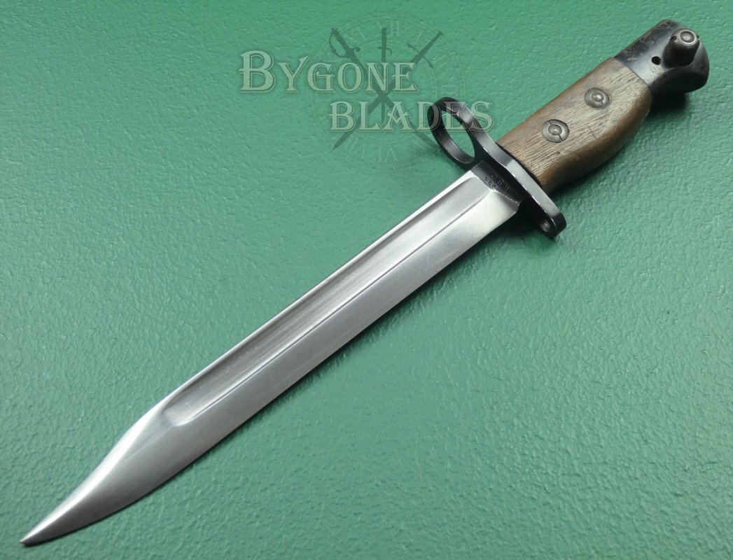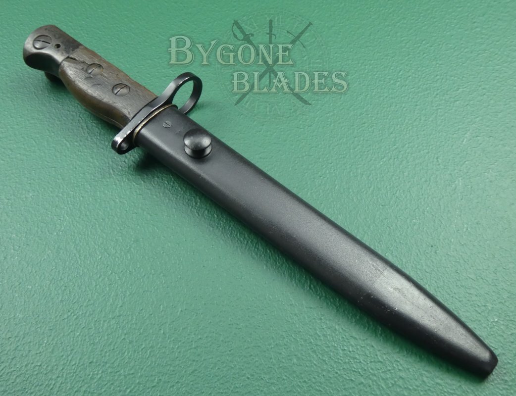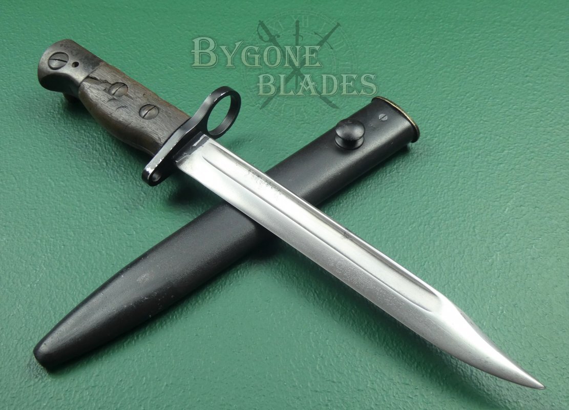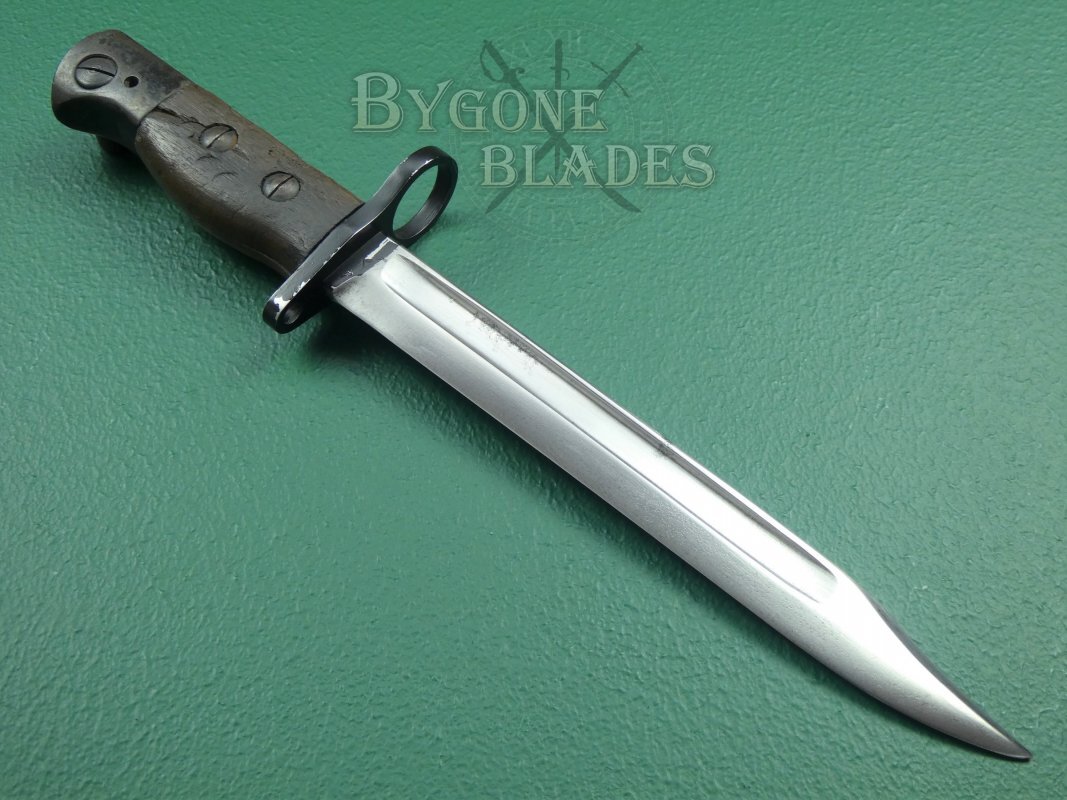 Rare No.5 Mk1, Type II bayonet for the No.5 Mk 1 Lee Enfield. Mk1, Type I bayonets had only a single screw through the grip scales and are incredibly rare.