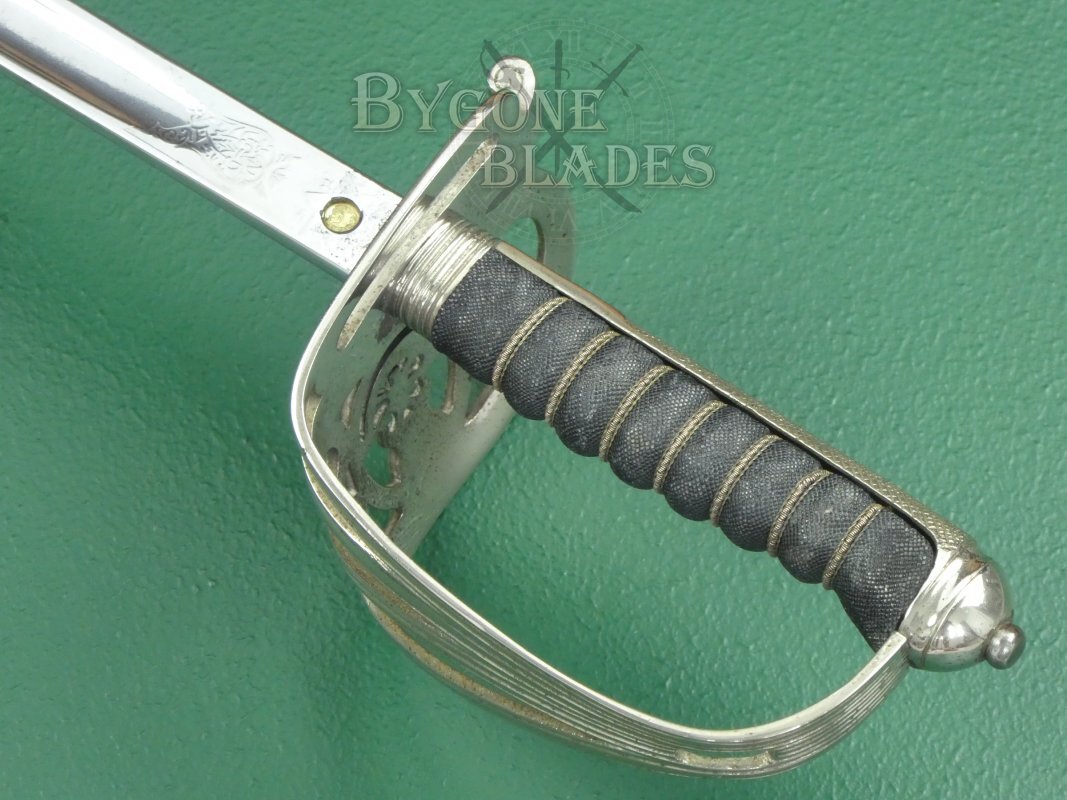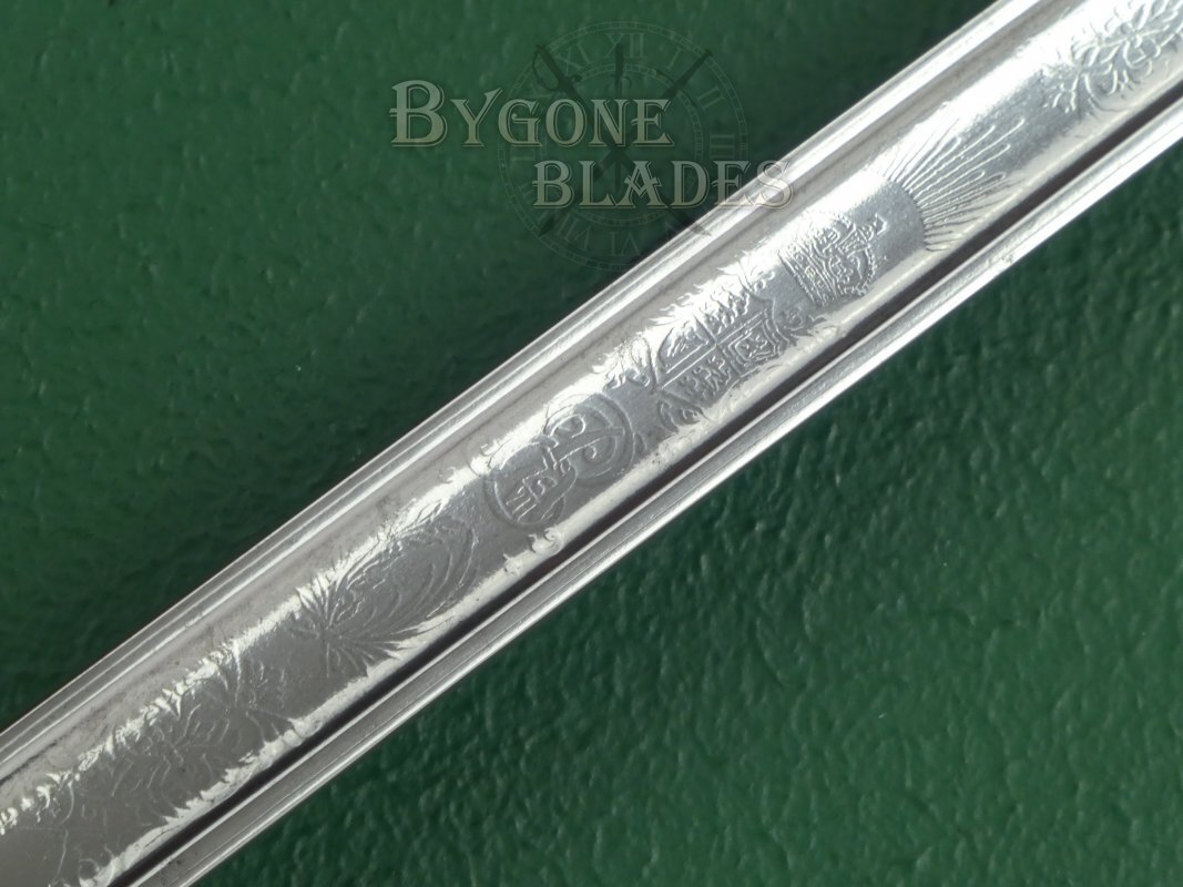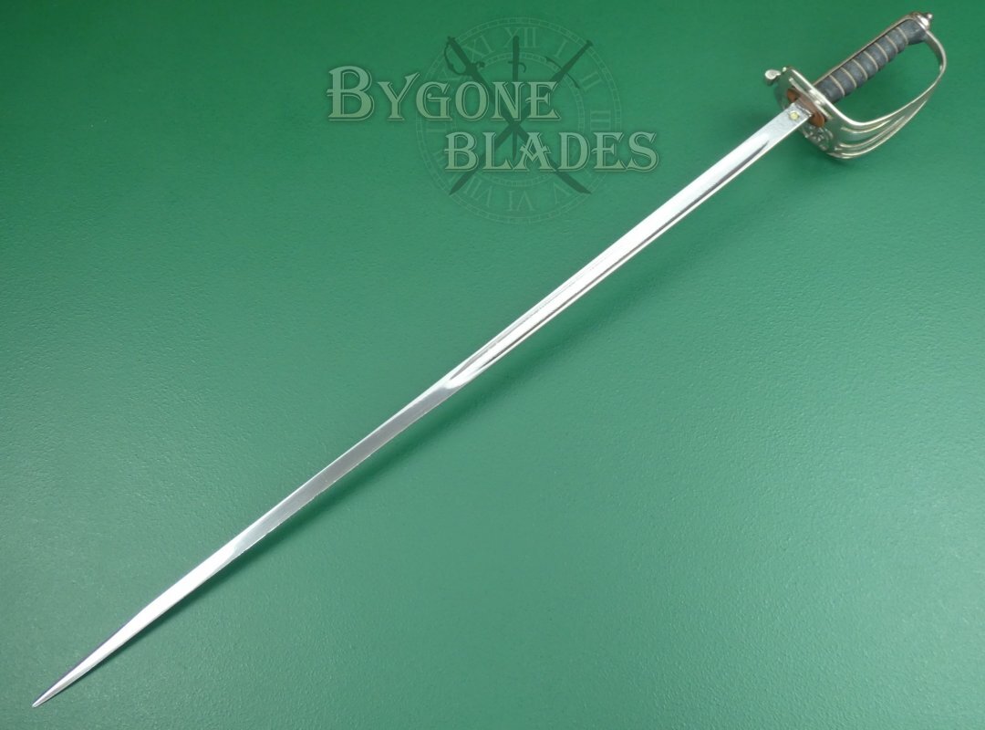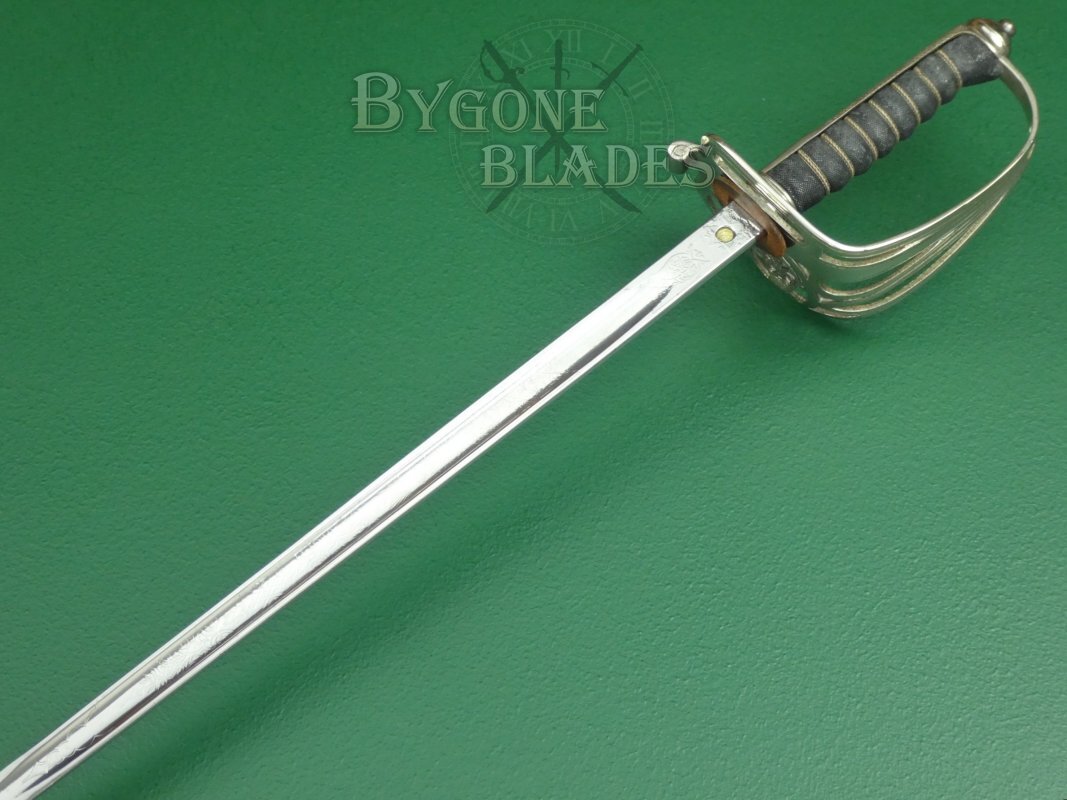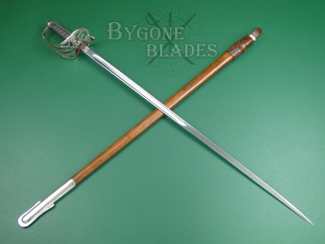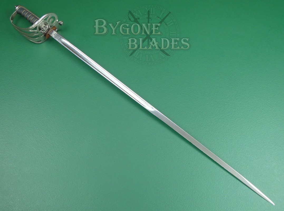 This is an excellent example of a scarce 1892 bladed Edwardian Rifle officer’s sword.