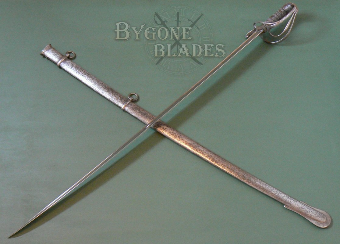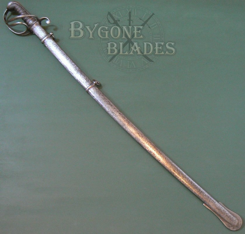 The steel scabbard is in good condition and holds the sword well. The scabbard is without damage or dents and has an all-over salt and pepper patina.