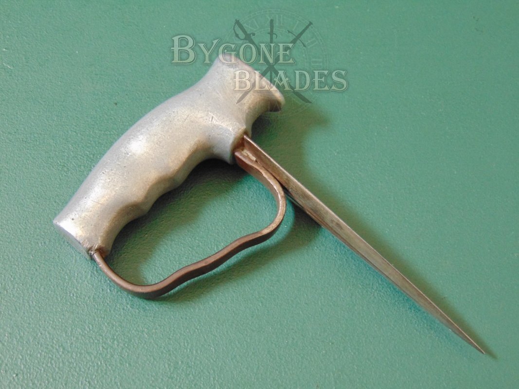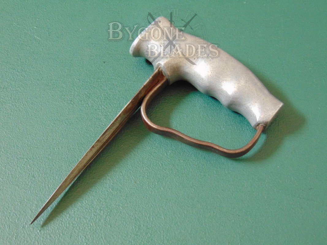 A rare Robbins of Dudley World War 1 Punch knife. These knuckle-duster weapons were made for private purchase by the troops and were not officially issued weaponry. The Medieval brutality of trench fighting led to a demand for close quarter weaponry and Britain’s cutlers rose to the challenge developing numerous terrifyingly efficient trench knives. This knife was made by the firm, Robbins of Dudley, Worcester between 1897 and 1920.