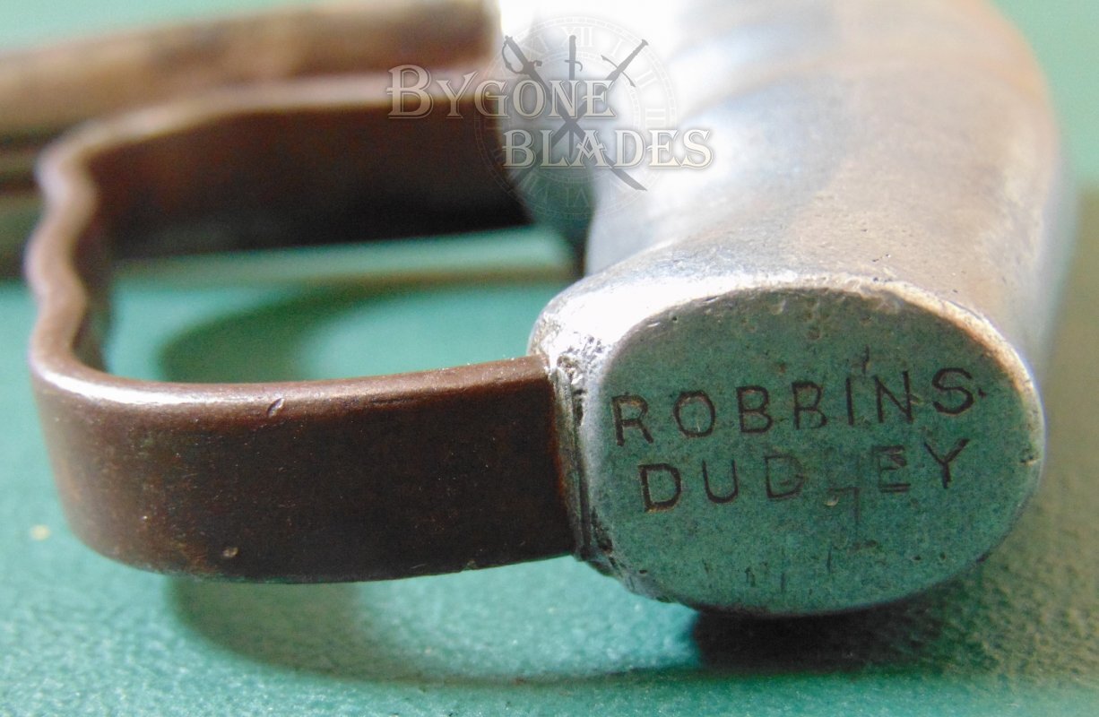 The bottom of the cast grip is stamped with the maker’s details: Robbins Dudley.