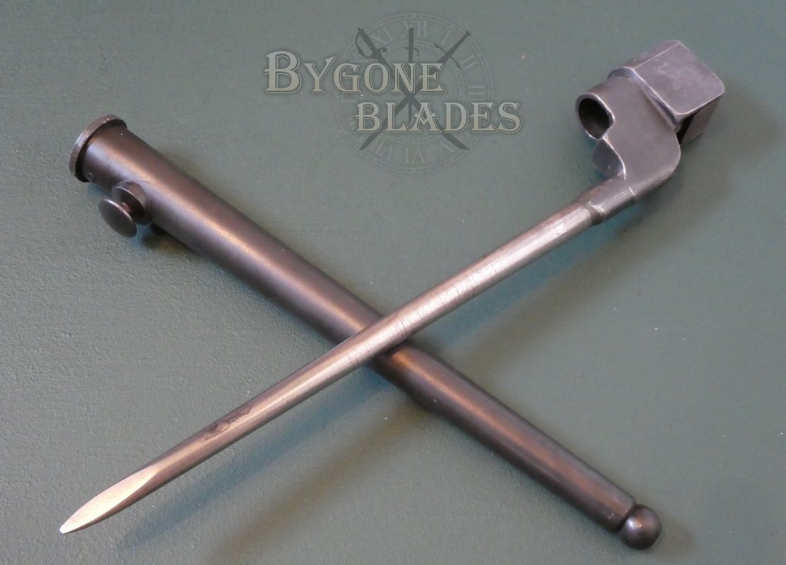 Canadian WW2 No.4 Mk II bayonet made at Long Branch in Ontario. Long Branch produced 910,000 of the No.4 Mk II spike bayonets between 1941 and 1945. This bayonet is identical to the British No.4 Mk II spike bayonet. Only the markings are different.