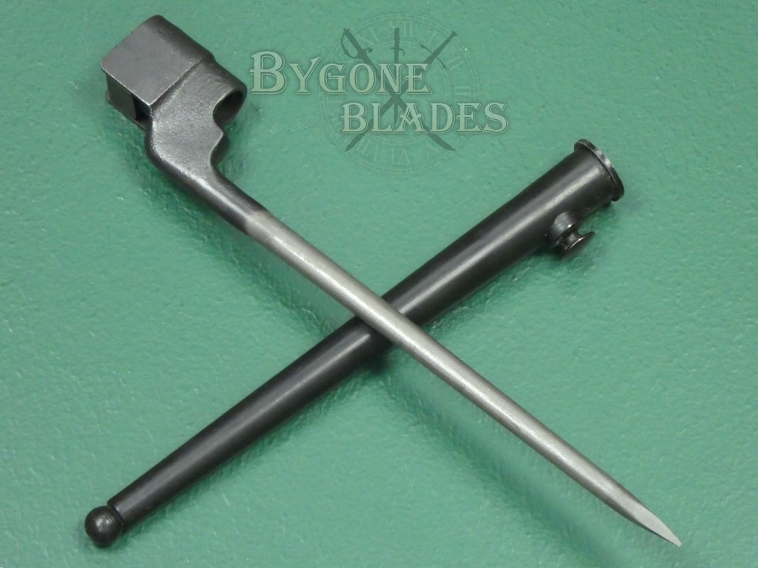 Canadian WW2 No.4 Mk II bayonet made at Long Branch in Ontario. Long Branch produced 910,000 of the No.4 Mk II spike bayonets between 1941 and 1945. This bayonet is identical to the British No.4 Mk II spike bayonet. Only the markings are different.