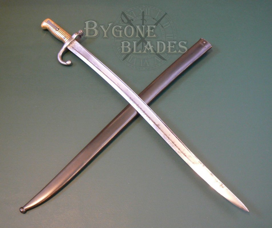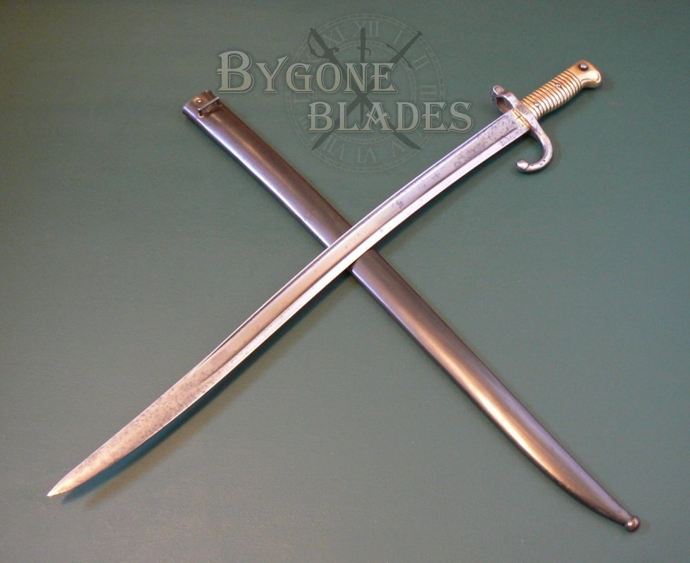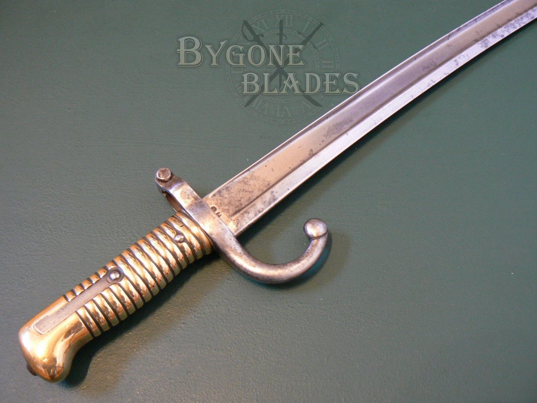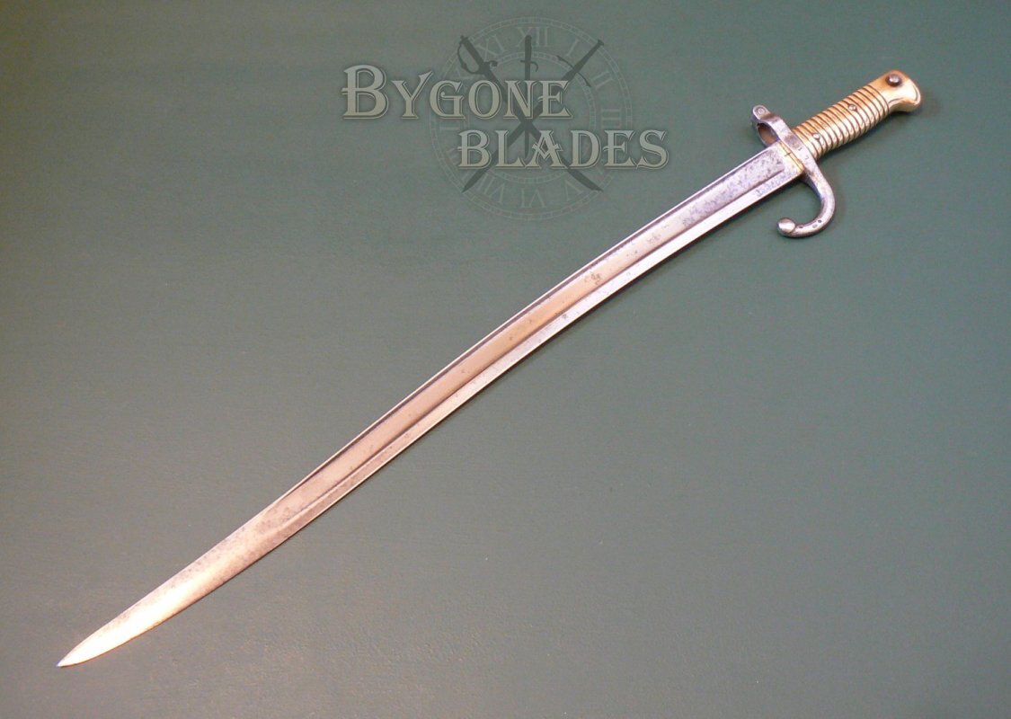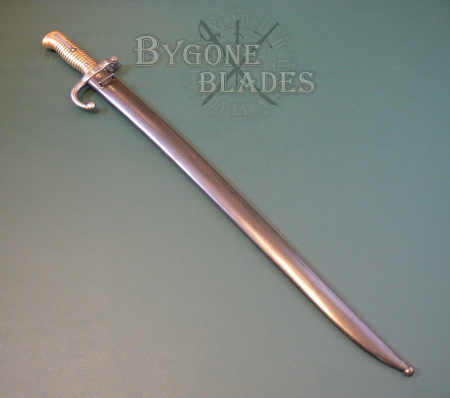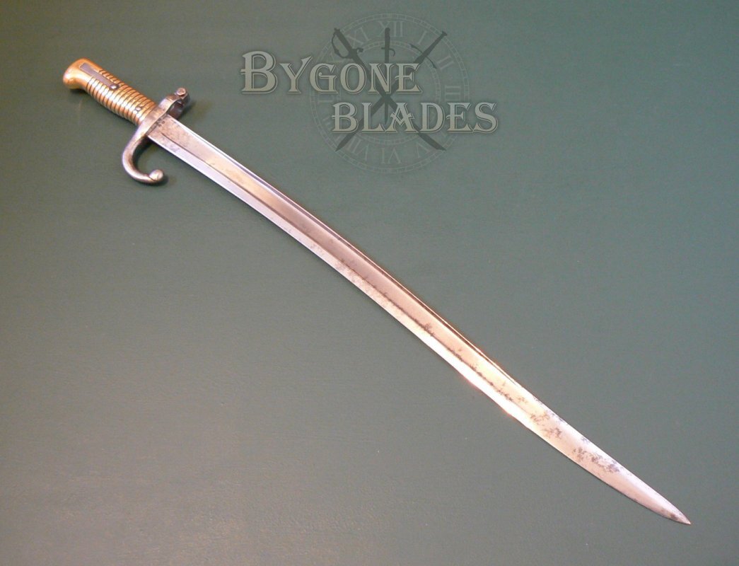 Fine example of the famous French sword bayonet for the Chassepot rifled musket made by the state armoury at St Etienne in December 1870.