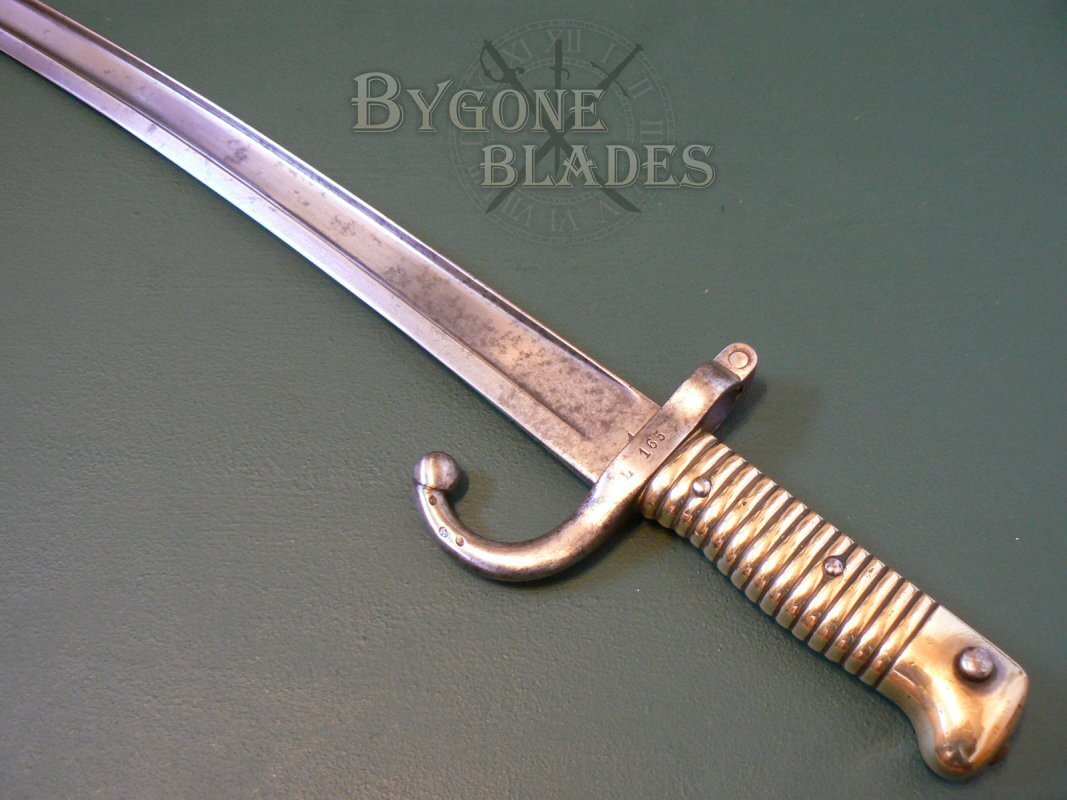 This is a fine example of a French war-time production Chassepot bayonet made during the closing months of the Franco-Prussian War.