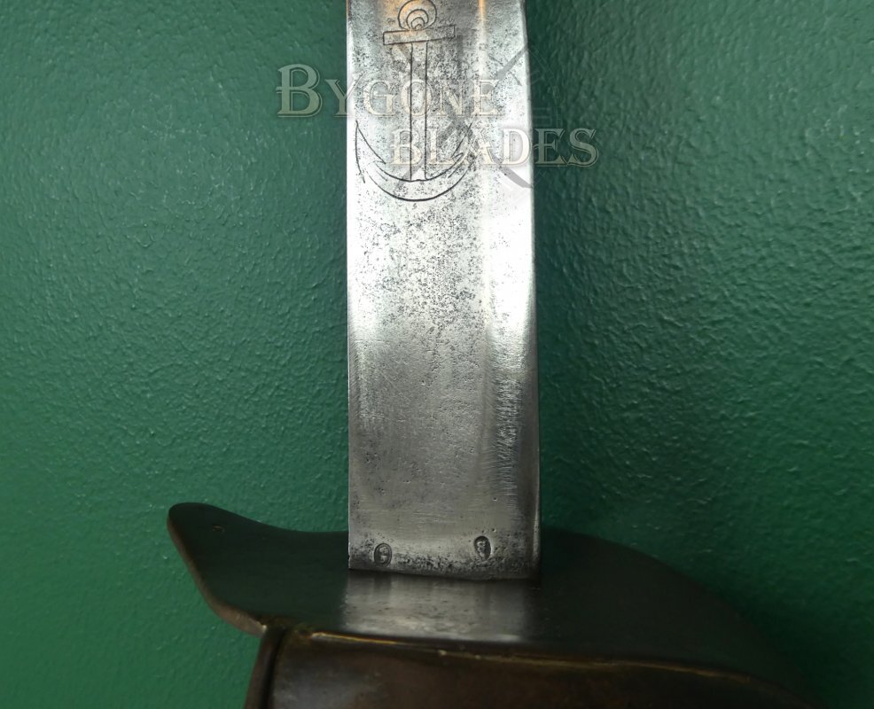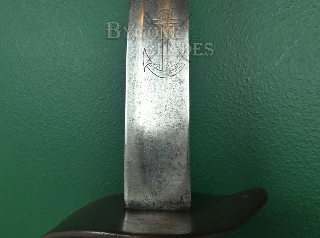 The forte of the blade bears a large anchor on both sides and the ricasso is stamped with two inspection poincon. The blade is in very good condition, free from rust and with a pleasing mild patina.