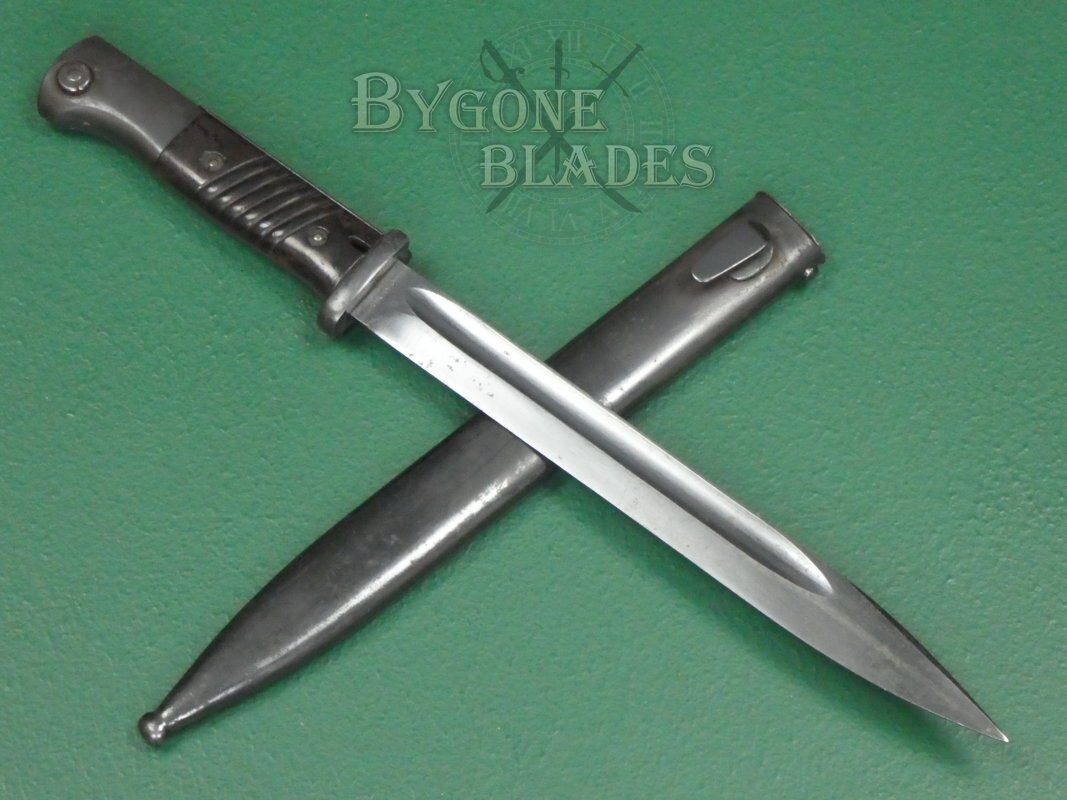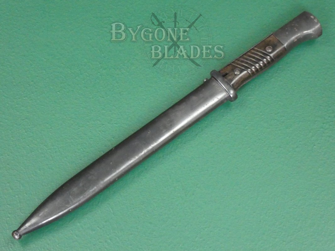 German WW2 M1884/98. Also known as the K98, as it was designed for use with the Karabiner 98 kurz, bolt-action rifle. The K98k rifle was the standard service rifle used by the German Wehrmacht during WW2.
