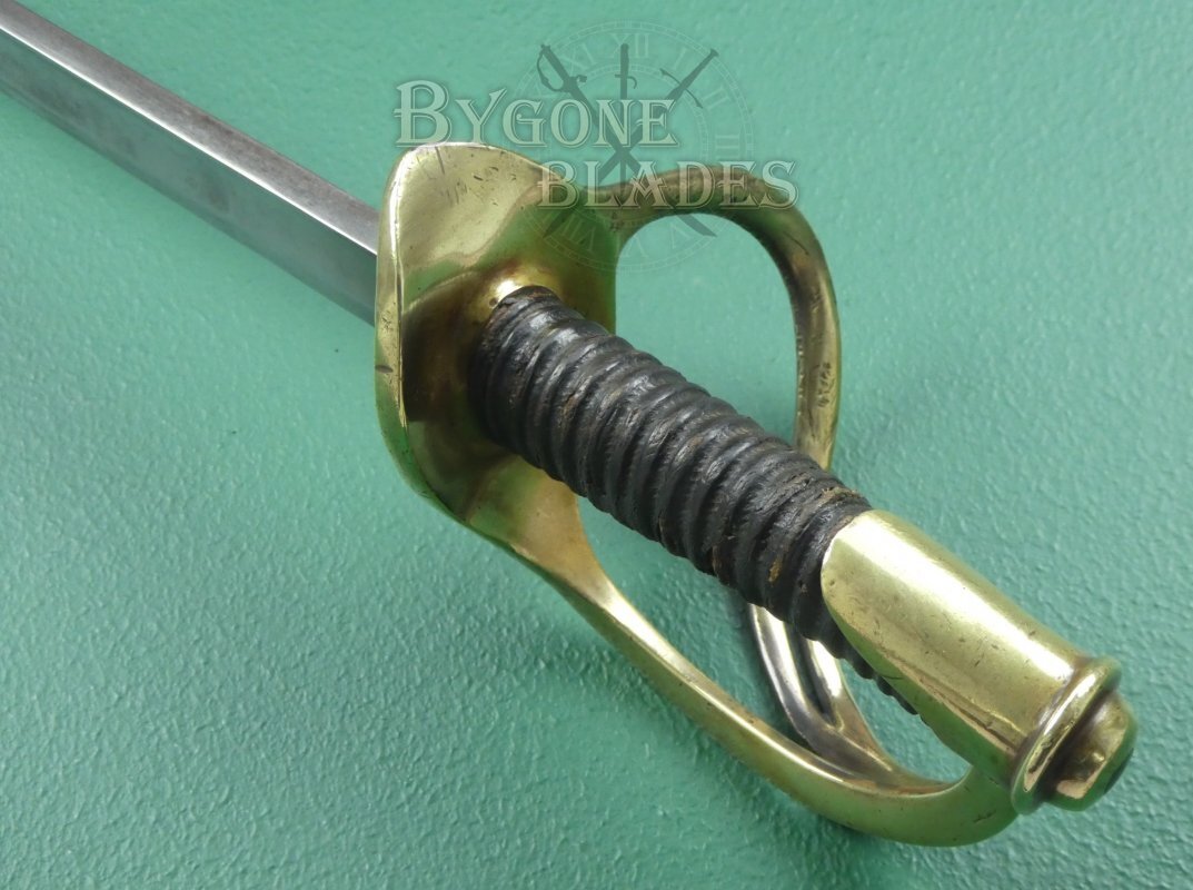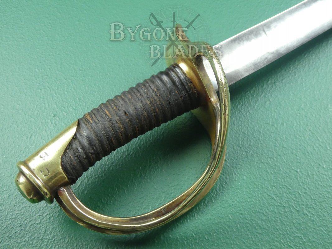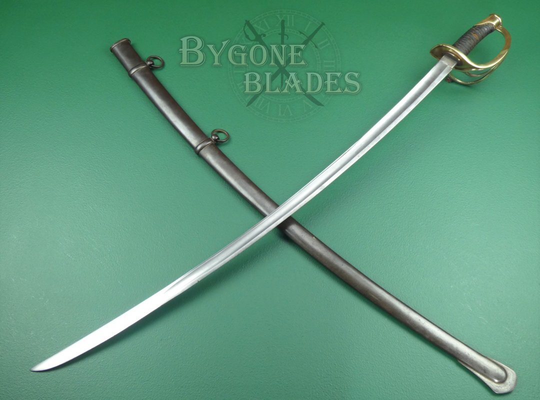 This heavy cavalry sabre, commonly referred to as Model 1840 “Wrist-breaker” was one of the military sabres used by U.S. mounted forces before and during the American Civil War (1861-65). These sabres were a copy of the earlier French Mdle 1822 Cavalry Sabre and the development of the US M1840 closely followed that of the French M1822. French Mdle 1822 sabres were however only produced in France.