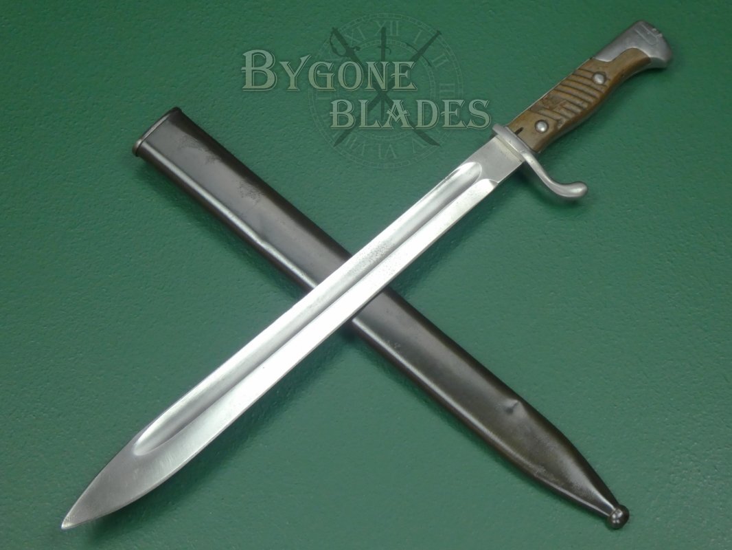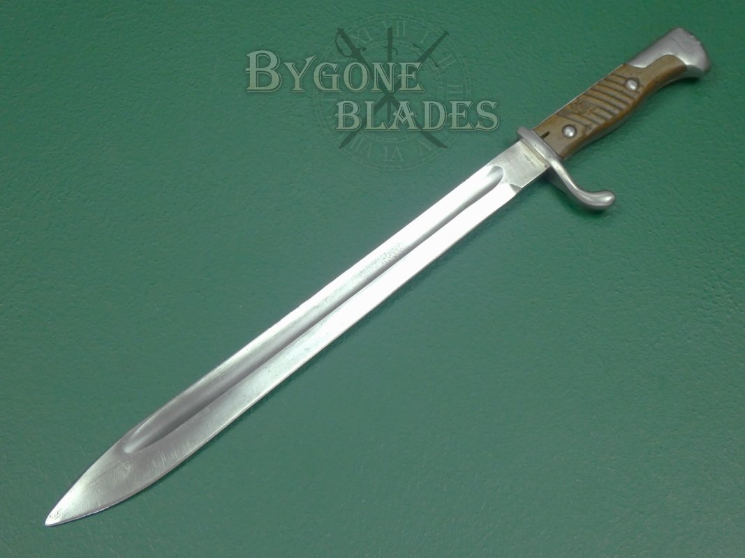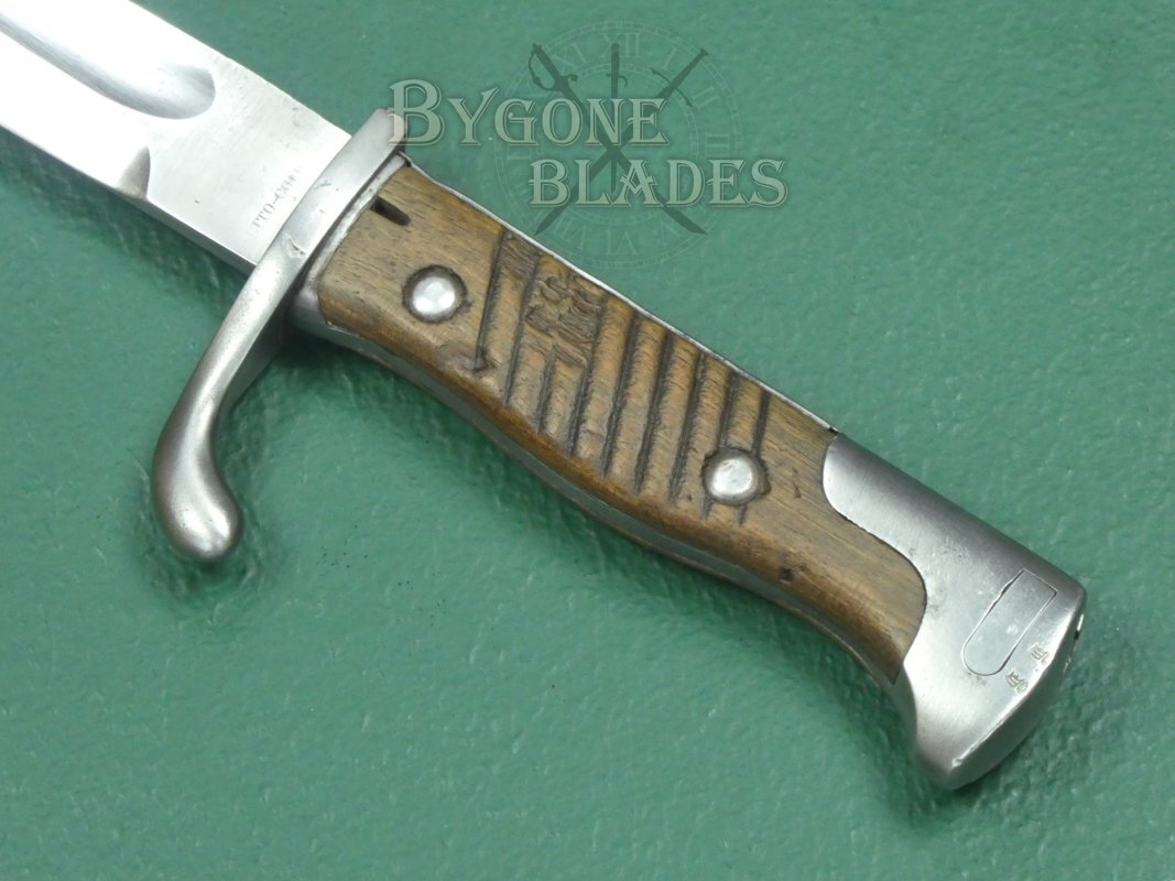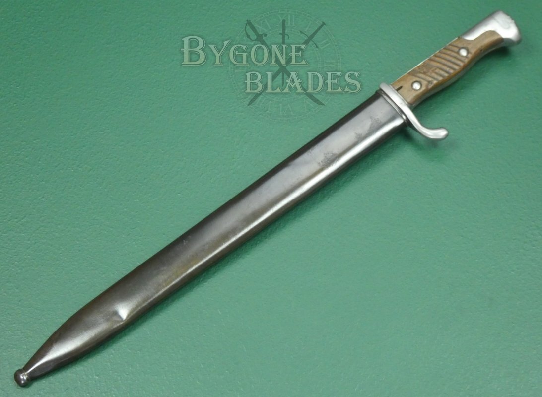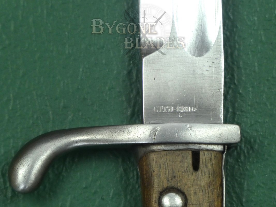 This is a good example of the iconic German Great War bayonet made by a rare maker.