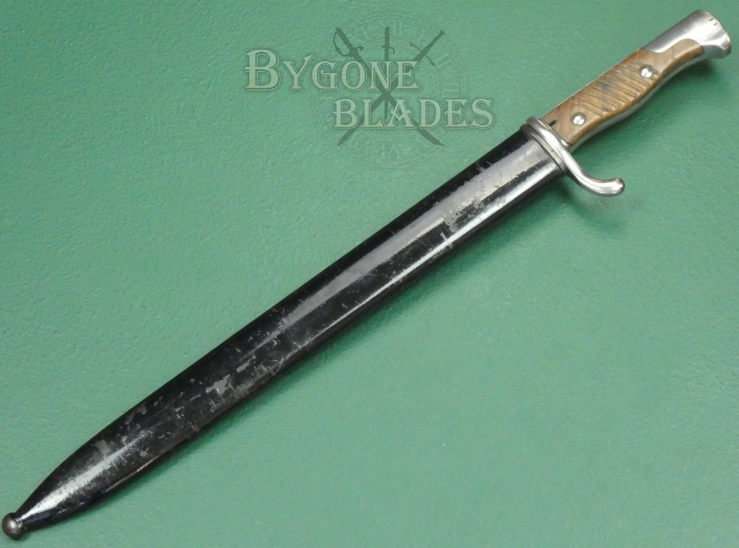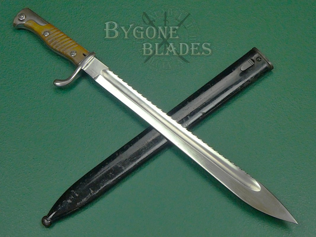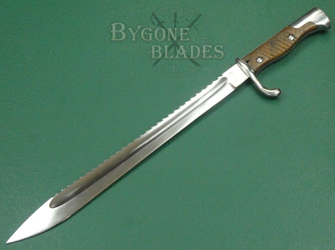 Rare German WW1 S98/05 m.S. Saw-back “Butcher’s Blade” Bayonet. The saw-back version was known as the S98/05 m.S. (mit Säge - with saw). Only 6% of S98/05 bayonets were made with the saw-back. This S98/05 m.S was made in 1916.