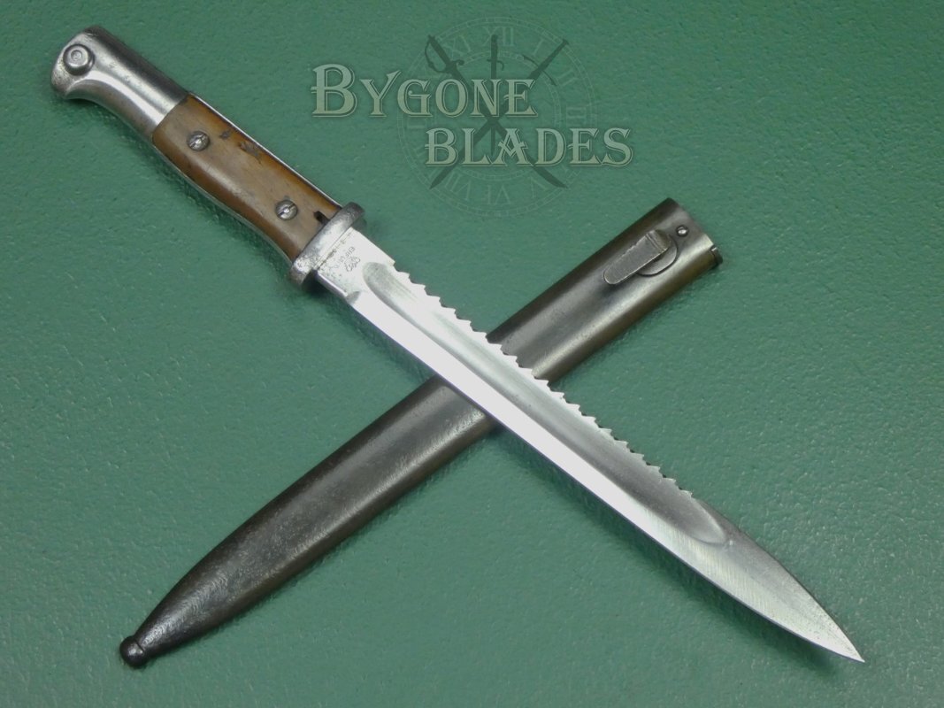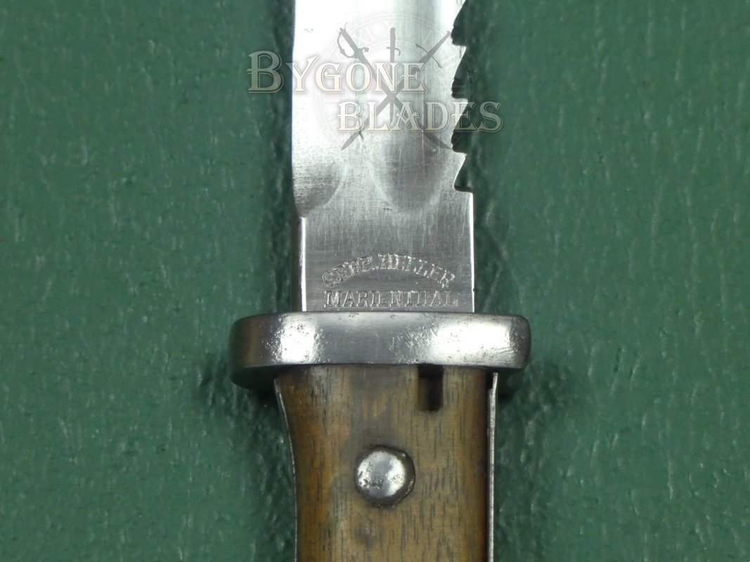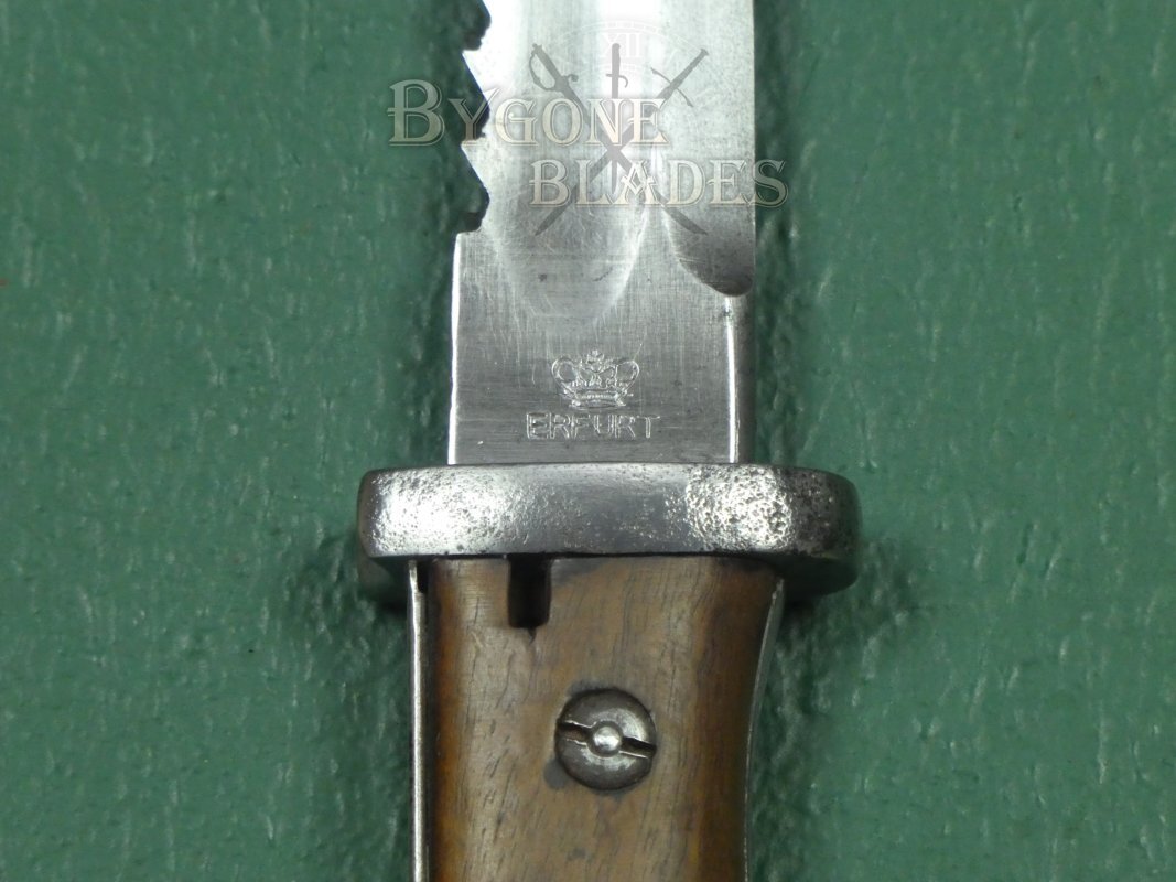 This is a very good example of a rare, double marked, saw-toothed Mk II pattern 1884/98 bayonet made during the reign of Kaiser Wilhelm II.
