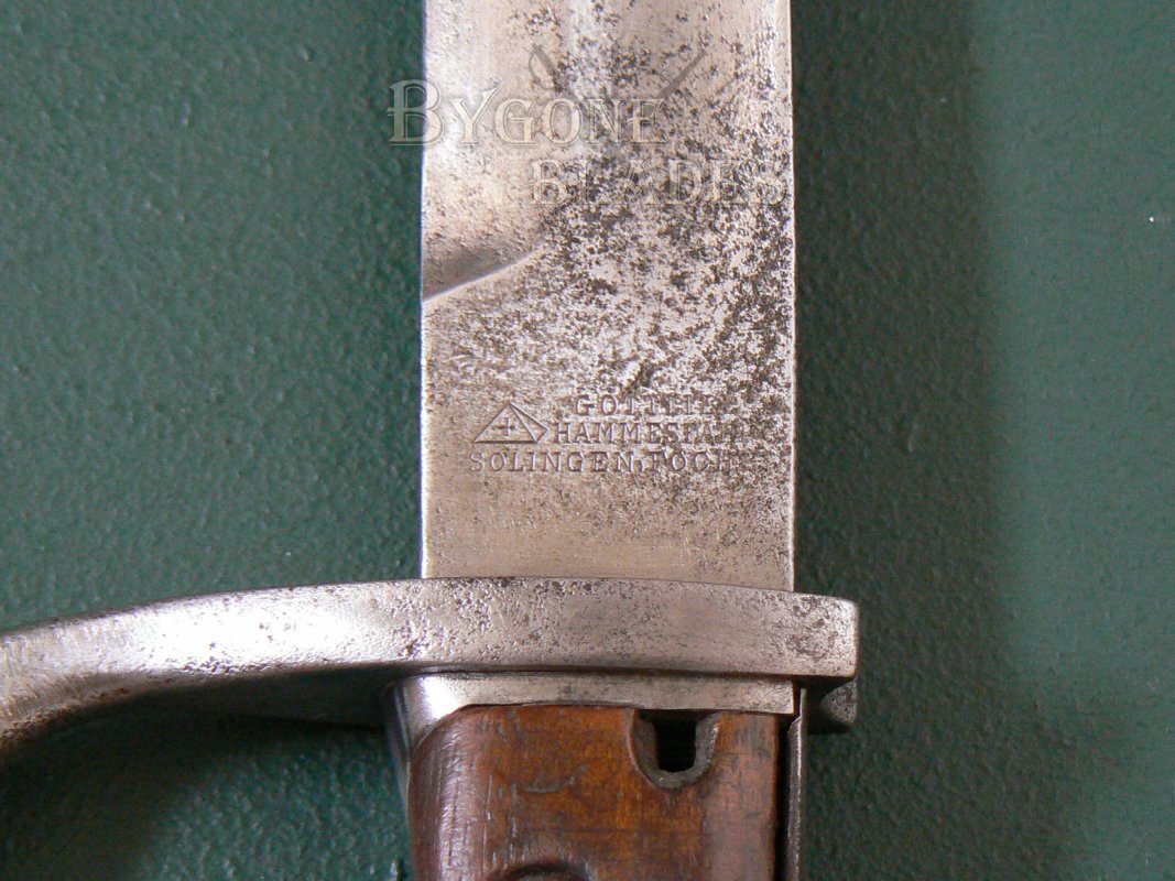 The obverse ricasso is maker marked to "Gottlieb Hammesfahr Solingen, Foche." The S98/05 was the first of only two bayonets produced by this company. Gottlieb Hammesfahr produced the S98/05 from 1915 to 1917.