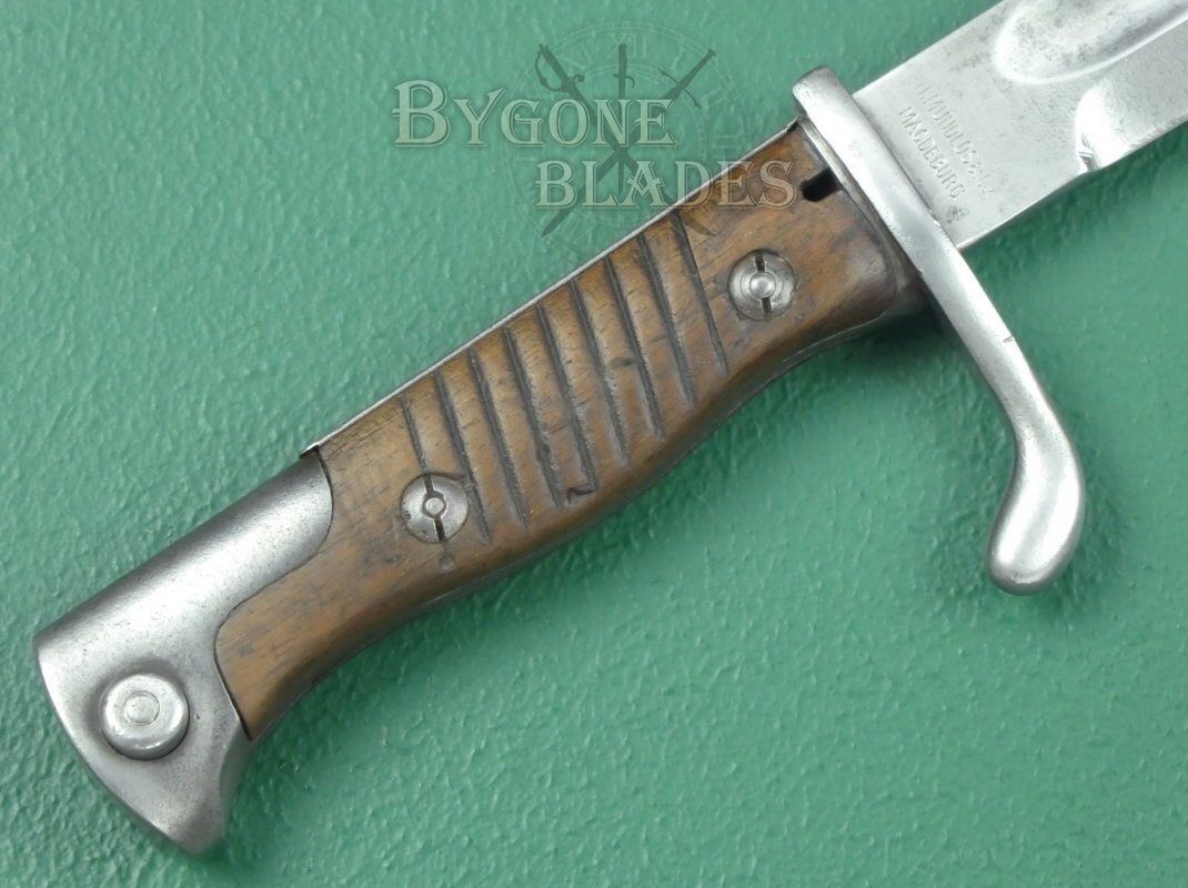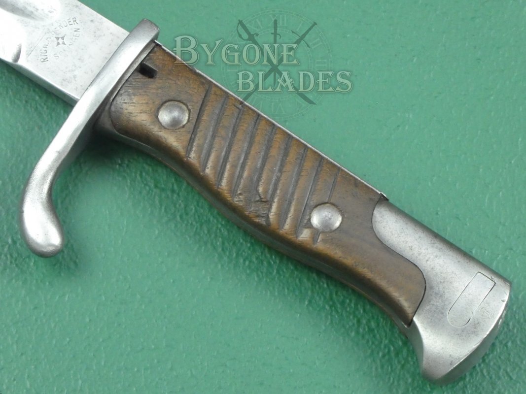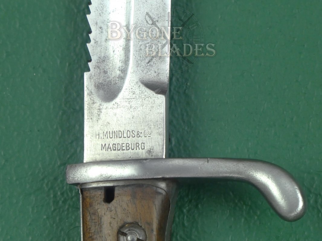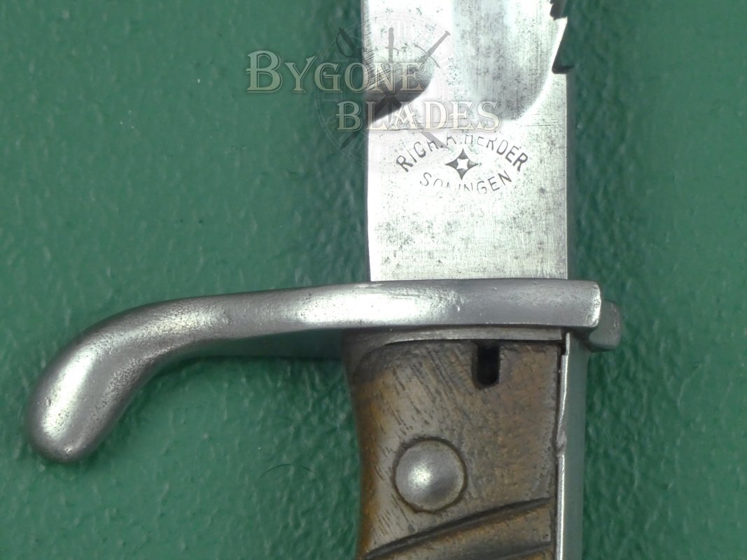 This bayonet has two makers marks, Rich(ard) A. Herder of Solingen and H. Mundlos & Co., of Magdeburg, and is marked accordingly on each ricasso. Bayonets with twin makers are much harder to find than those made and completed by a single manufacturer.