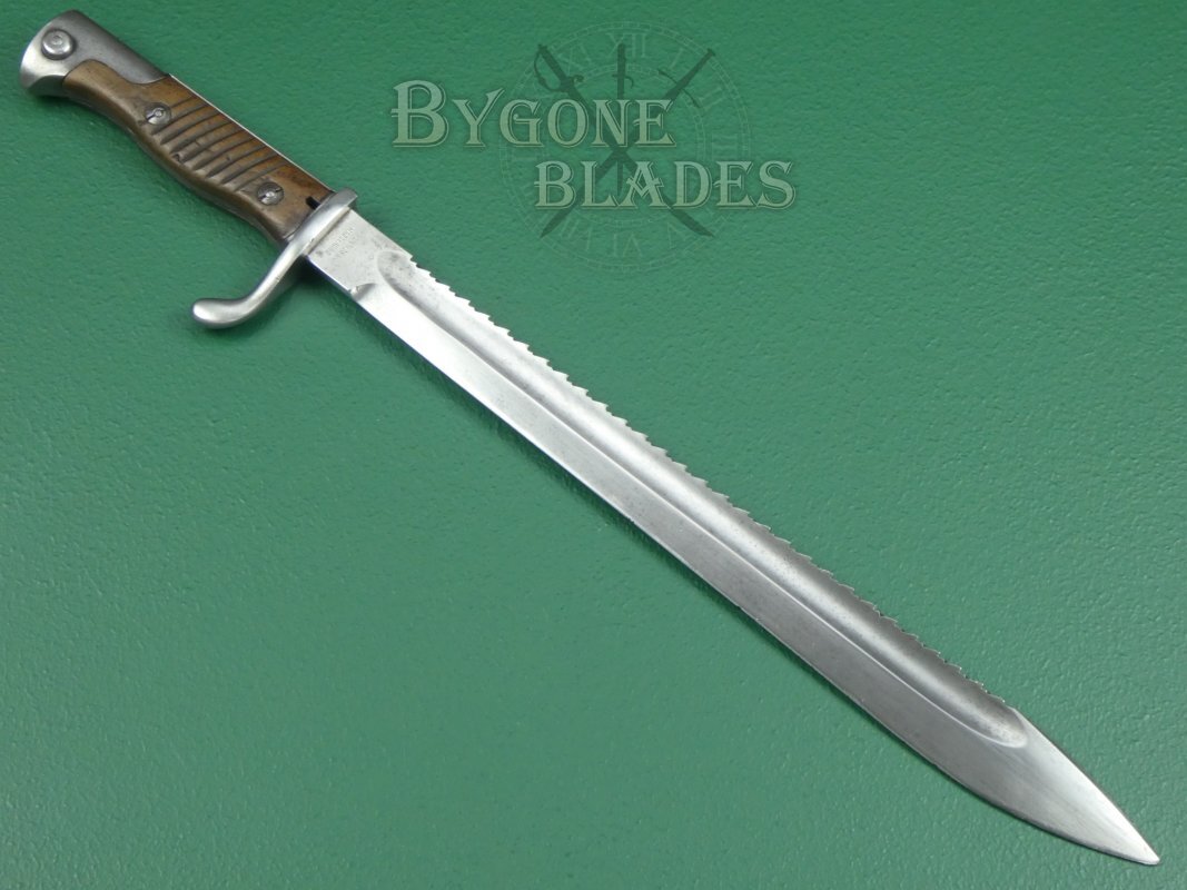 This is a great example of a rare German WW1 saw backed bayonet, made even rarer by having two makers.