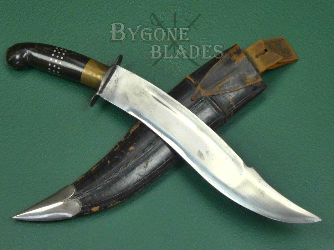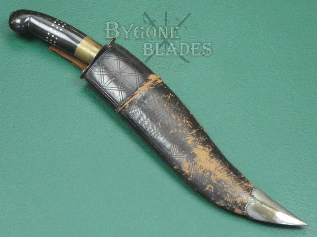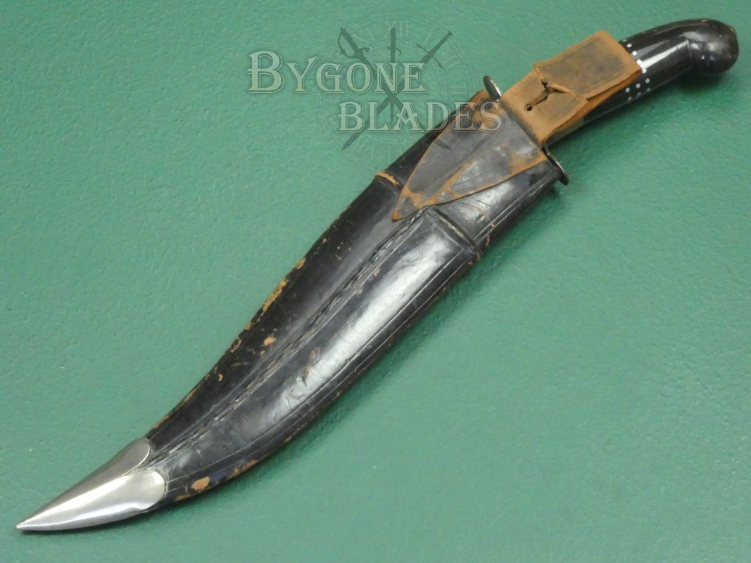 This vintage Indian made yataghan knife is of surprisingly good quality for something that was probably made for the 1960-70’s tourist market. The style is somewhere between a traditional kukri and a clip-point Bowie knife. Custom knives of this style sell for many hundreds of pounds.
