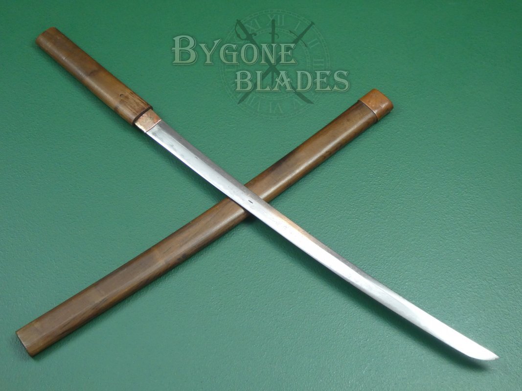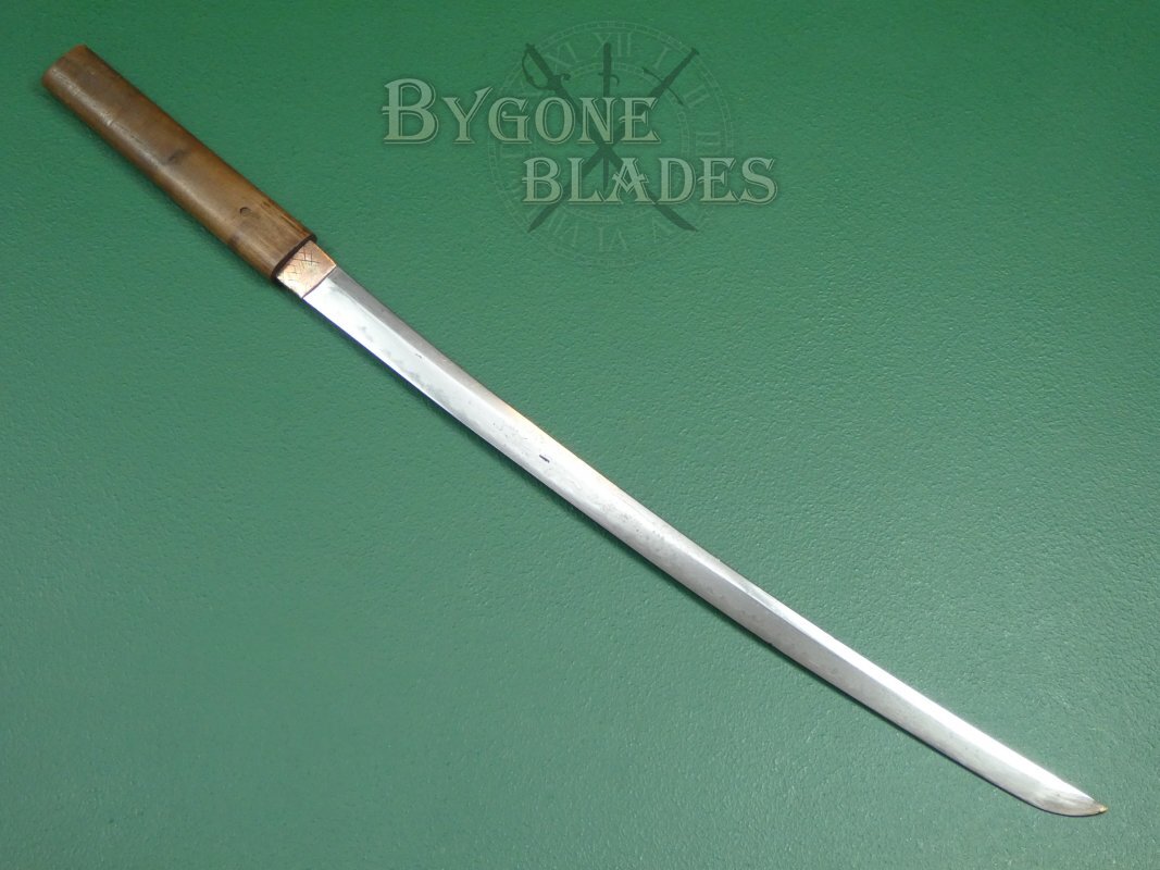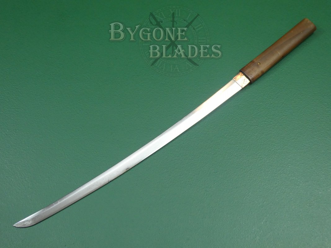 This is a traditionally forged Japanese wakizashi that while probably not desirable to the seasoned Nihonto enthusiast, remains a fair example of Japanese blade-smithing for a general sword collector.