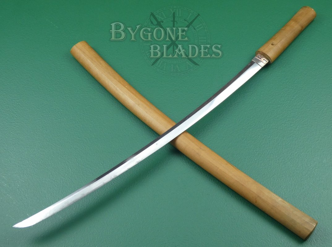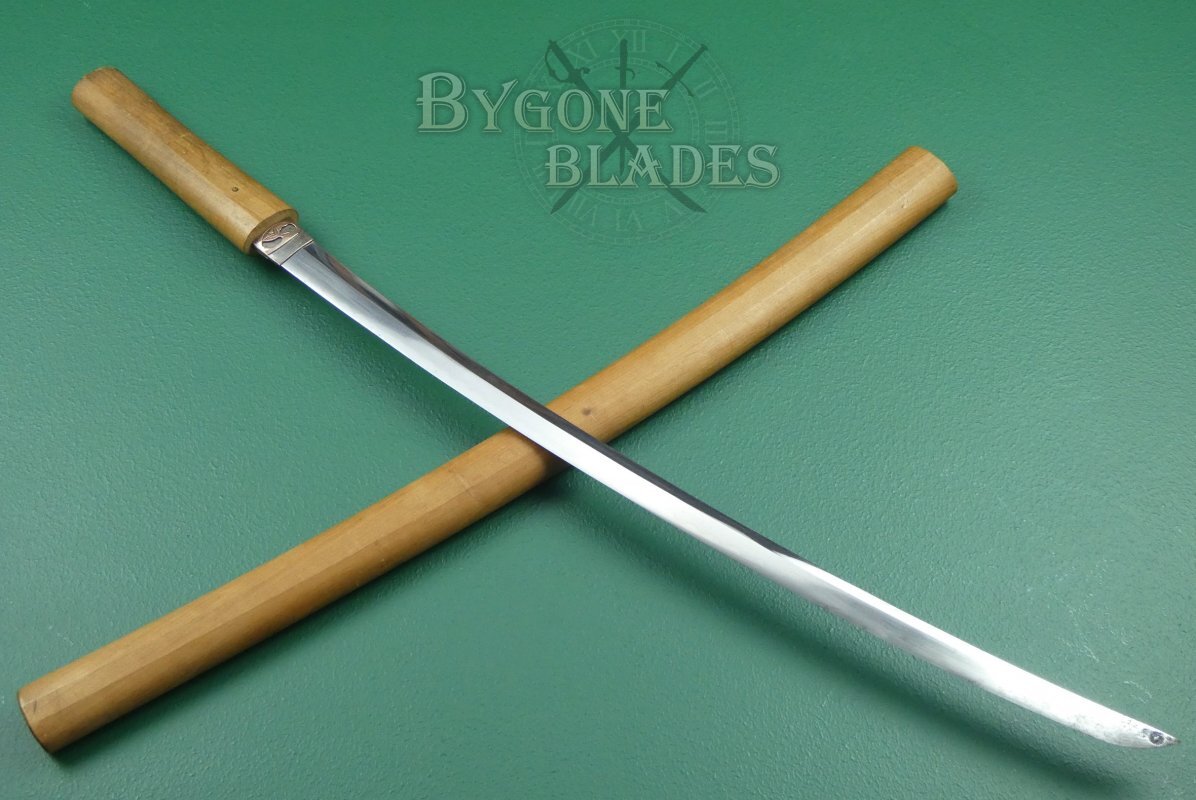 The blade is long for a Wakizashi, having a cutting edge (Nagasa) of 560mm. Wakizashi of this length were typical of the 15th and 16th Centuries. The curvature (Sori) of this blade is 22mm, which is again typical of blades of this period.