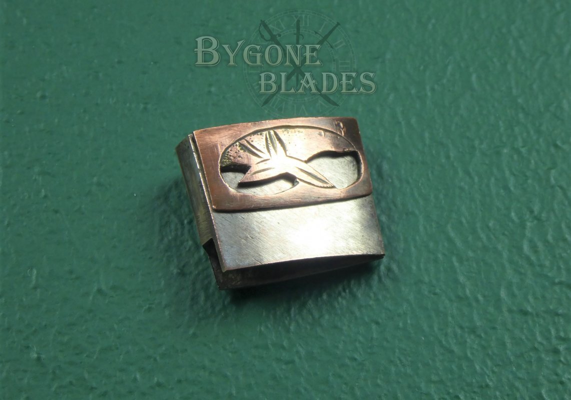 The two-piece blade collar (habaki) depicts what I believe is bamboo with a mountain backdrop. This is likely to be a Samurai clan crest or Mon and suggests that the wakizashi may have been owned by a person from a renowned family.
