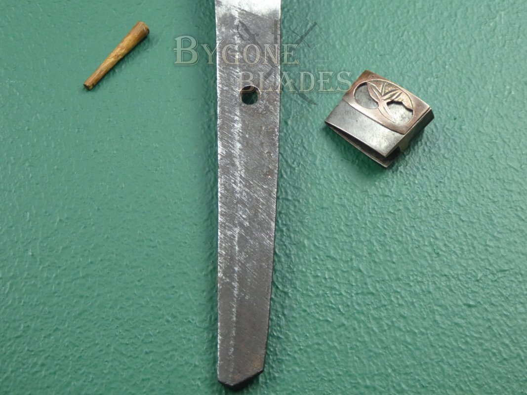 The tang is unsigned. The colour and condition of the tang indicate that the blade is, 19th Century at the latest and probably older.