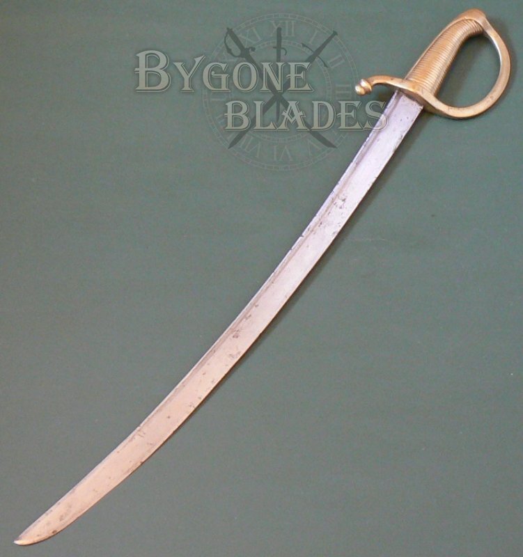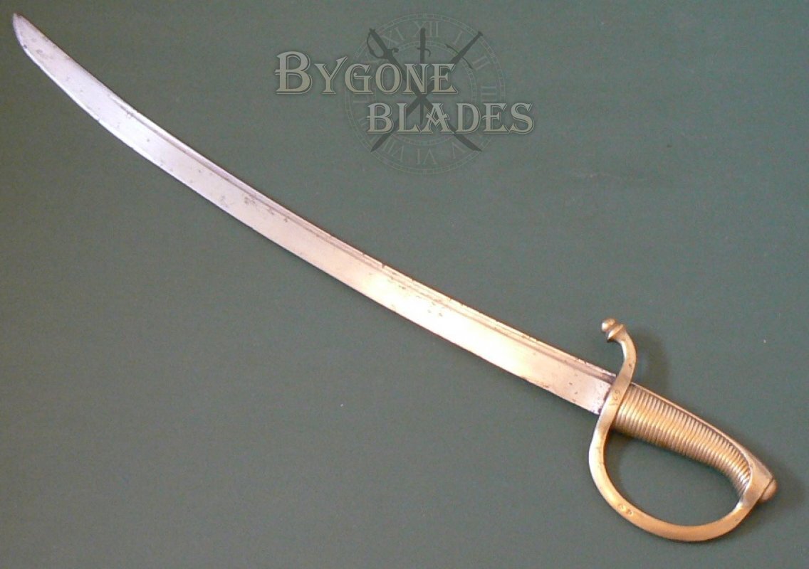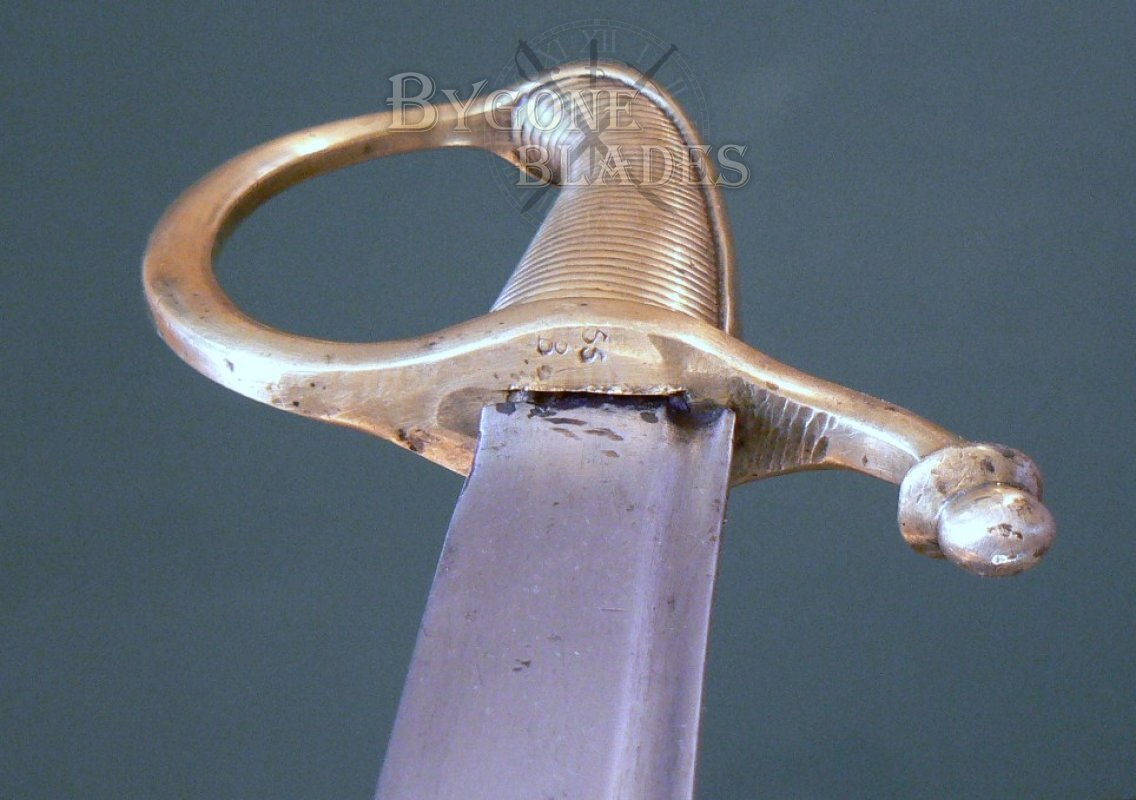 This could be an early French naval cutlass or infantry briquet but it could just as easily be from any of the many European countries that adopted this style of side arm at the beginning of the 19th Century. Research on the inspection stamps will ultimately identify its origins, making this sword an ideal and interesting research project for any collector of Napoleonic era weaponry.
