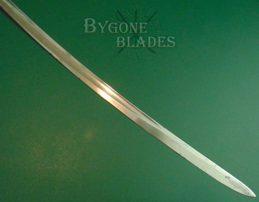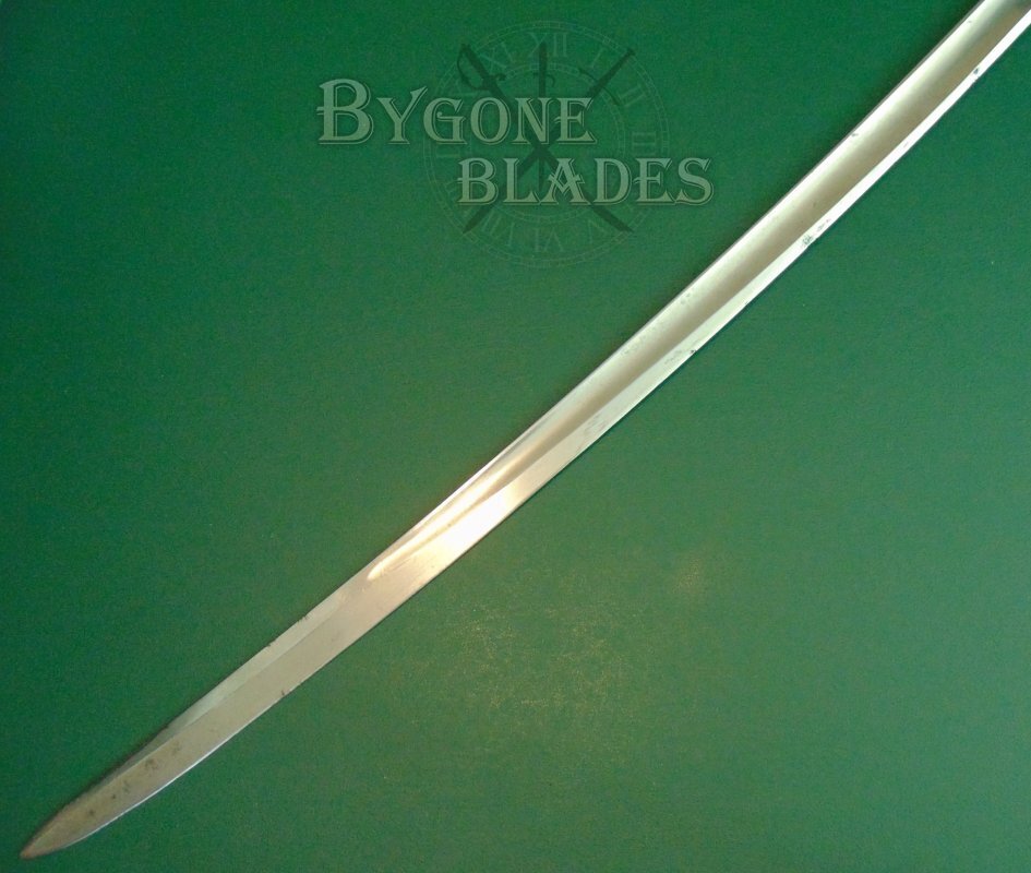 The scabbard is in good condition with some loss to the original lacquered finish. The sword sheathes and draws smoothly and is held firmly within the scabbard.