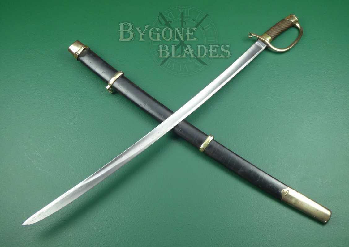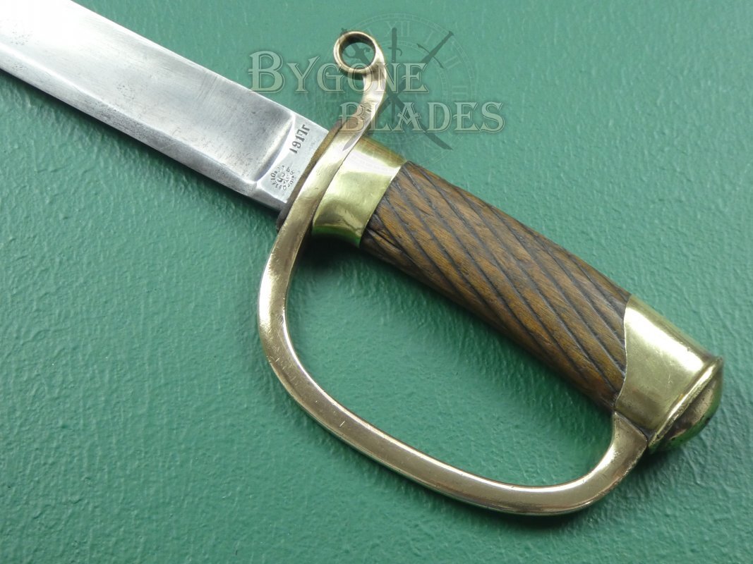 The scabbard is in good condition with some loss to the original finish. The top brass bayonet retaining band has been removed - by whom or why is unknown. The sword sheathes and draws smoothly and is held firmly within the scabbard.