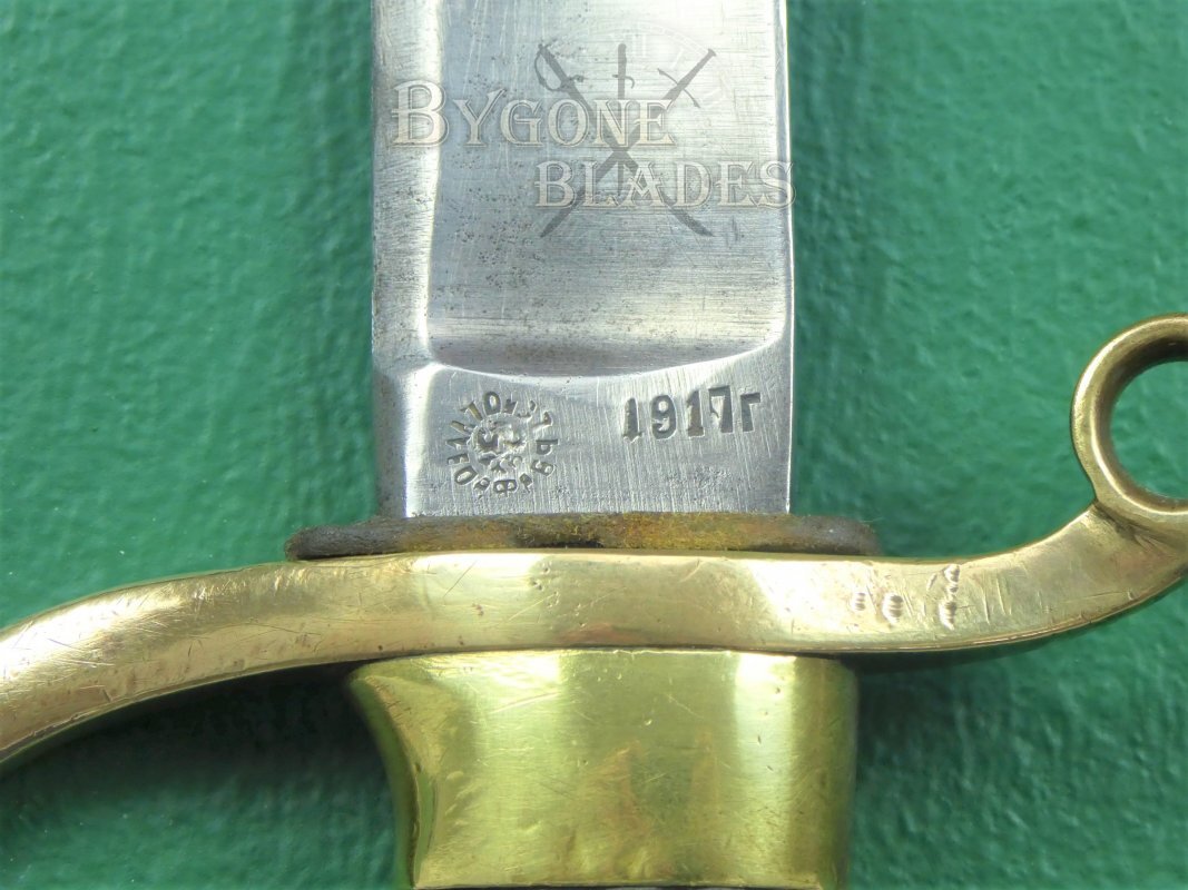This is a scarce and guaranteed genuine Imperial Russian model 1909 Dragoon shashka. This shashka was made at the Zlatoust factory in 1917 and would have been one of the last produced prior to the Russian Revolution which began in March 1917.