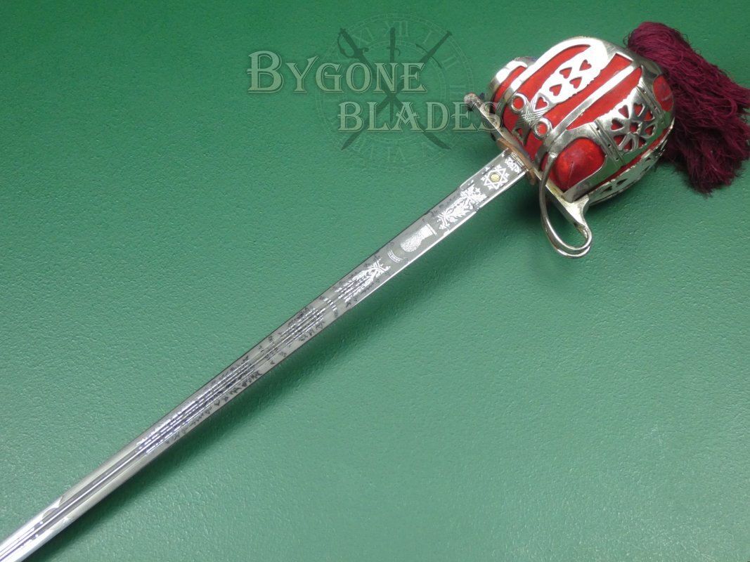 The sword is complete with its plated steel scabbard with twin suspension rings. The scabbard is in excellent condition. The sword sheathes and draws smoothly.