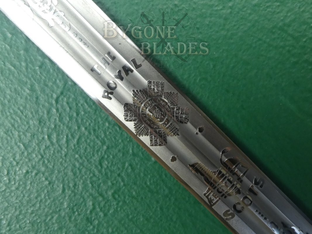 This is an excellent example of a scarce, named Royal Scots officer’s WW1 era broadsword.