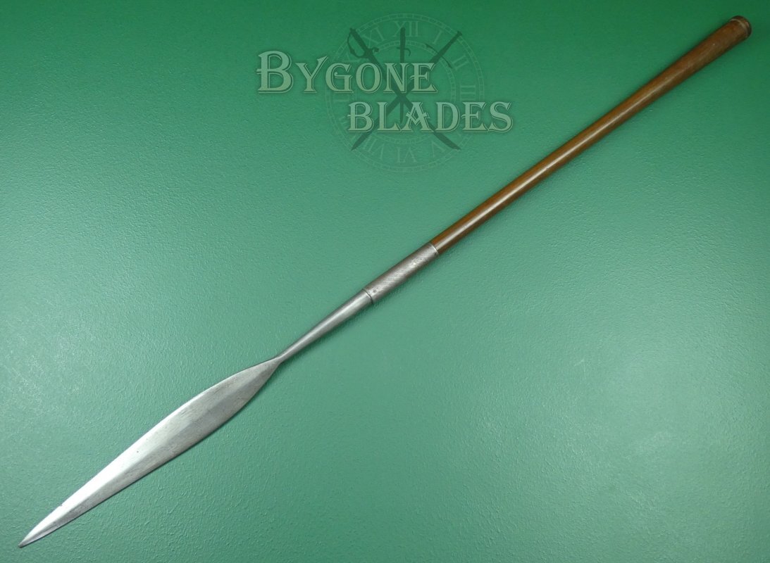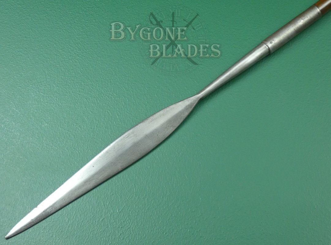 This rare iklwa was a government issued weapon provided to Zulu members of the South African Police and Prison Service in the first half of the 20th Century. Native members of the South African army were also issued with spears as late as WW2. This iklwa is dated 1925.