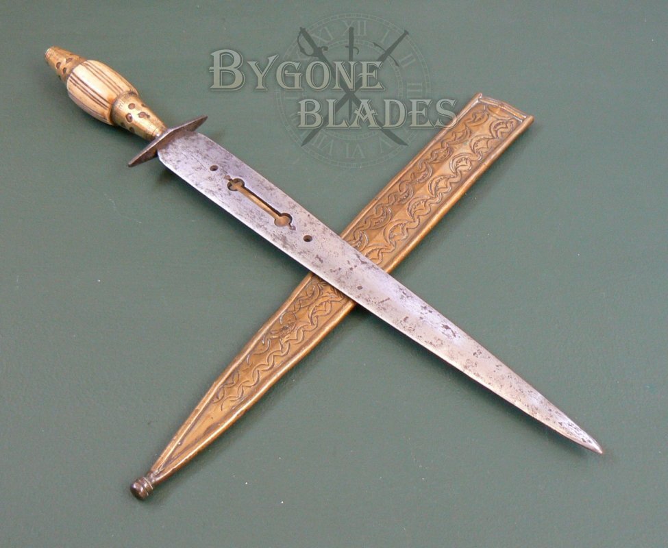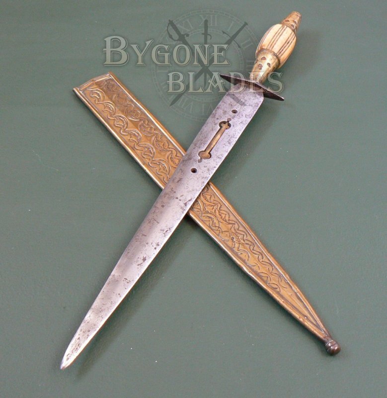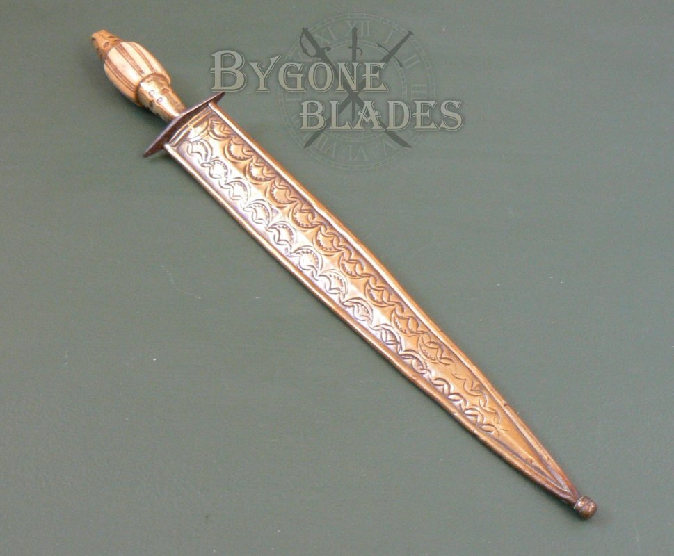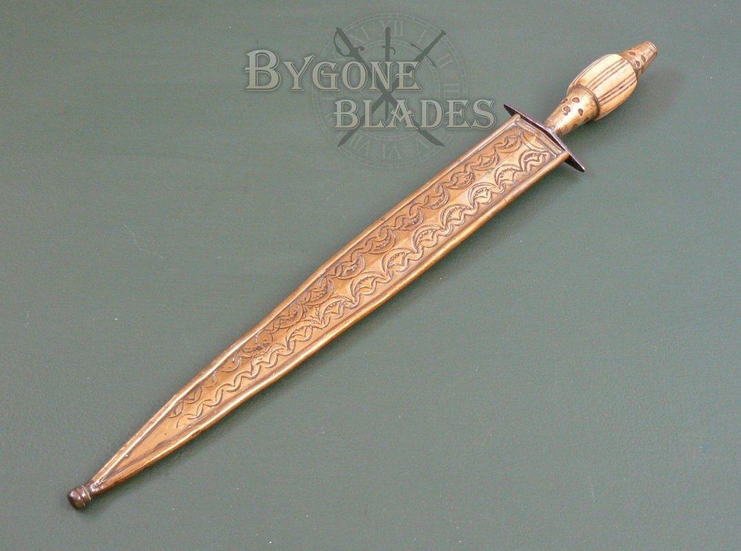 The dagger is complete with its original tooled brass scabbard. The dagger and scabbard are in very good condition.