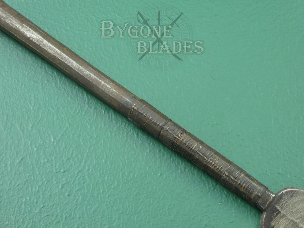 This spearhead is believed to have been brought back to the UK after the Sudanese Mahdist Uprising. The Mahdist Revolution (1881-1898) was an Islamic revolt against the Egyptian government in the Sudan. Britain became involved in support of their Egyptian allies and the uprising was ruthlessly crushed. The Battle of Omdurman, which took place on September 2, 1898 saw the superior numbers of the Mahdist forces, armed predominantly with bladed weapons, decimated by the modern firepower of the British army.