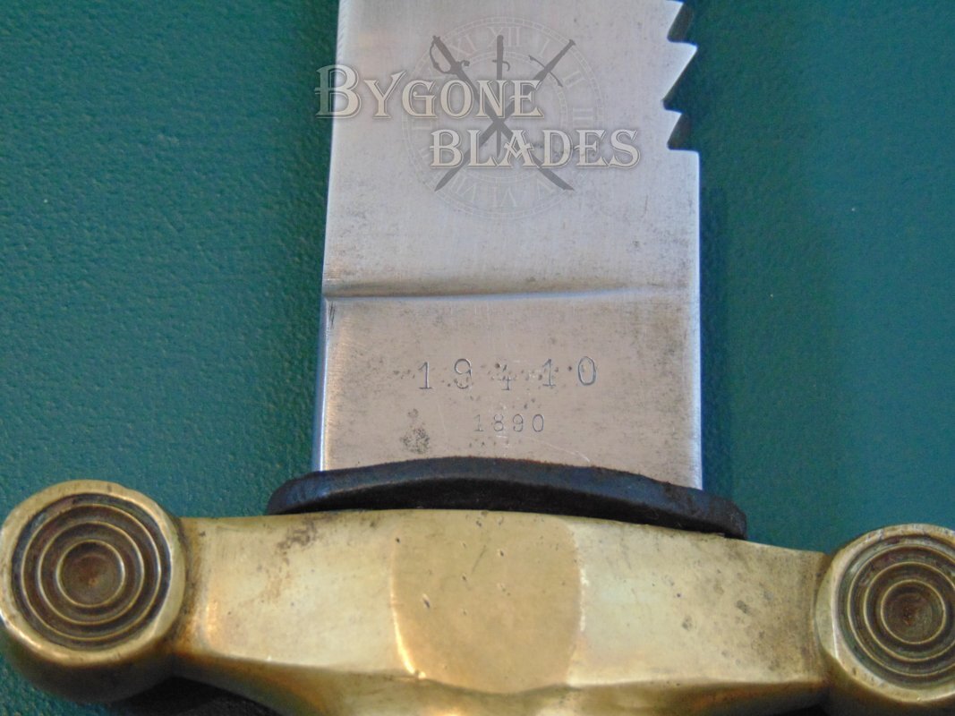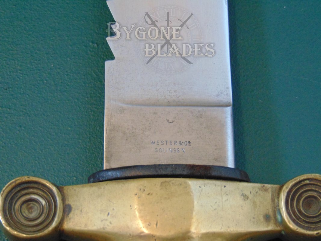 The ricasso is stamped with a Swiss cross and the German maker’s details, Wester & Co. Solingen. The obverse ricasso is stamped with the issue number 19410 and the date 1890.