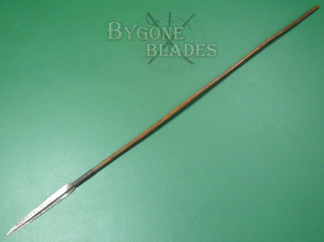 This spear has a 220mm blade with a raised medial ridge. The blade is 28mm at its widest and the edges remain sharp.