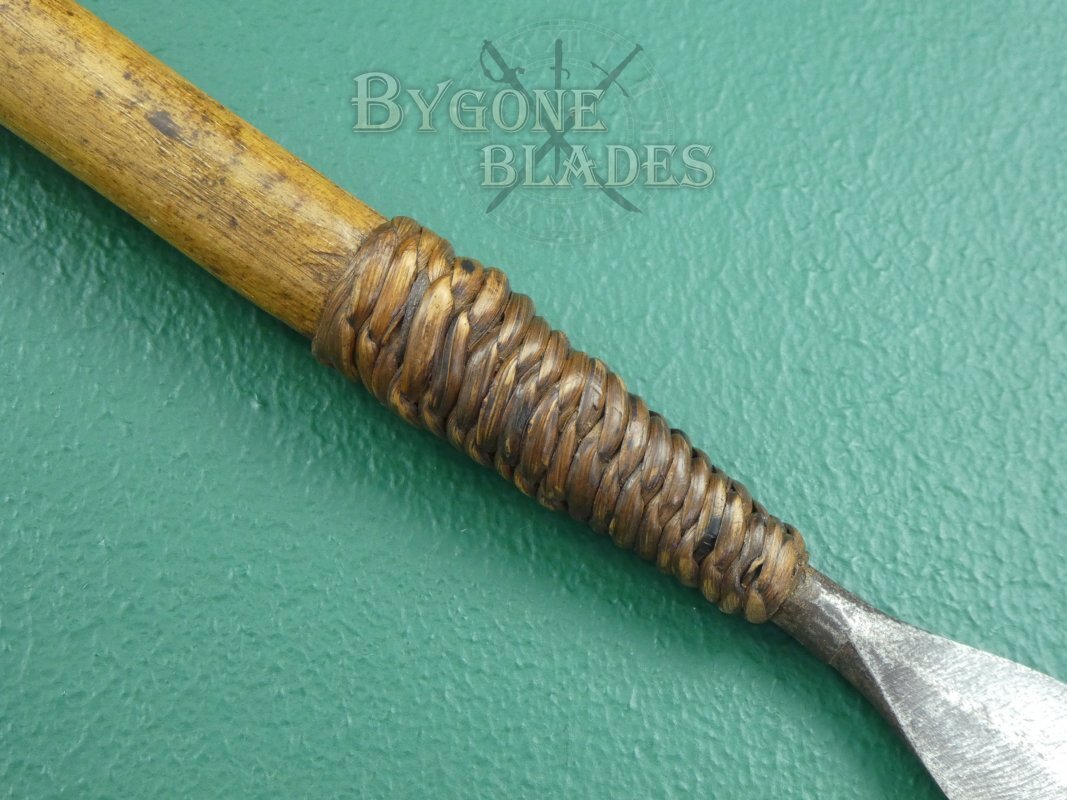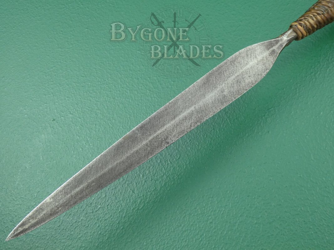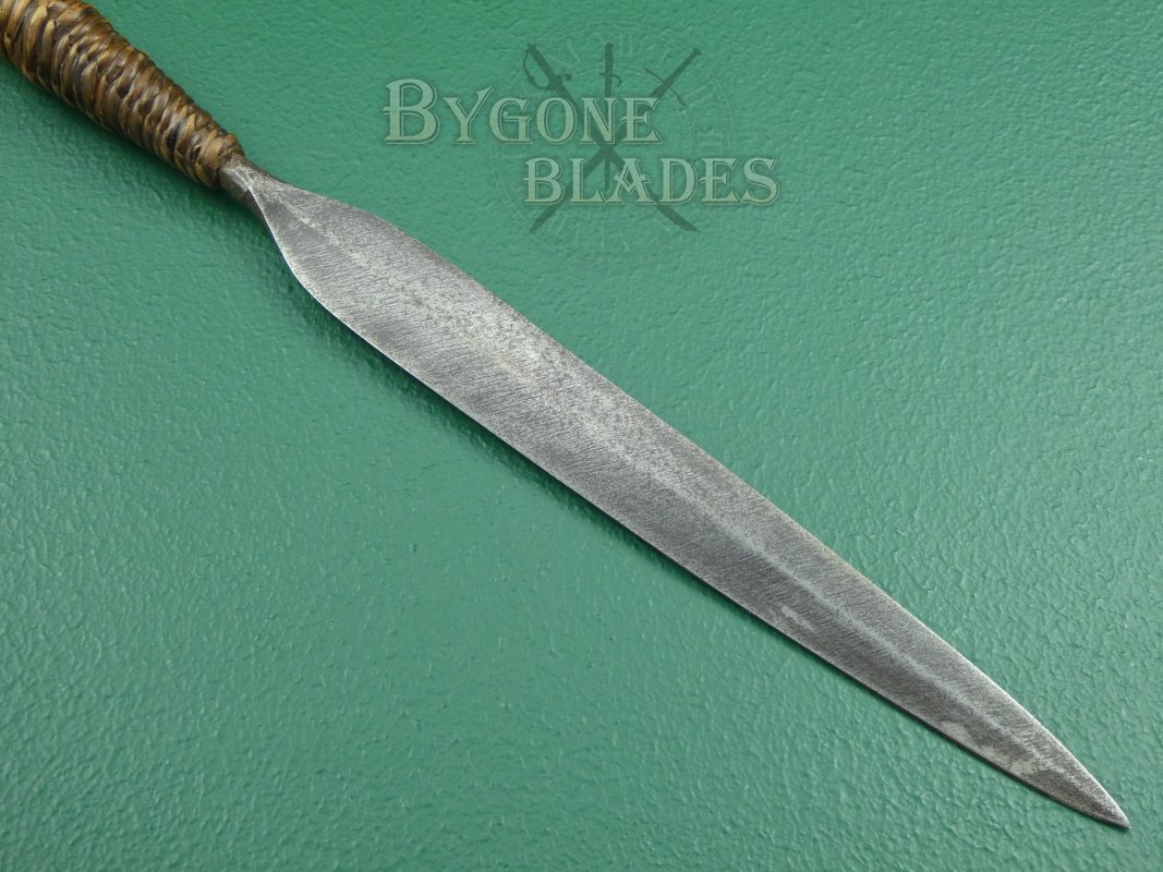 The blade is secured firmly within the haft and palm strips were woven around it to strengthen the bond. The palm binding is in excellent condition.