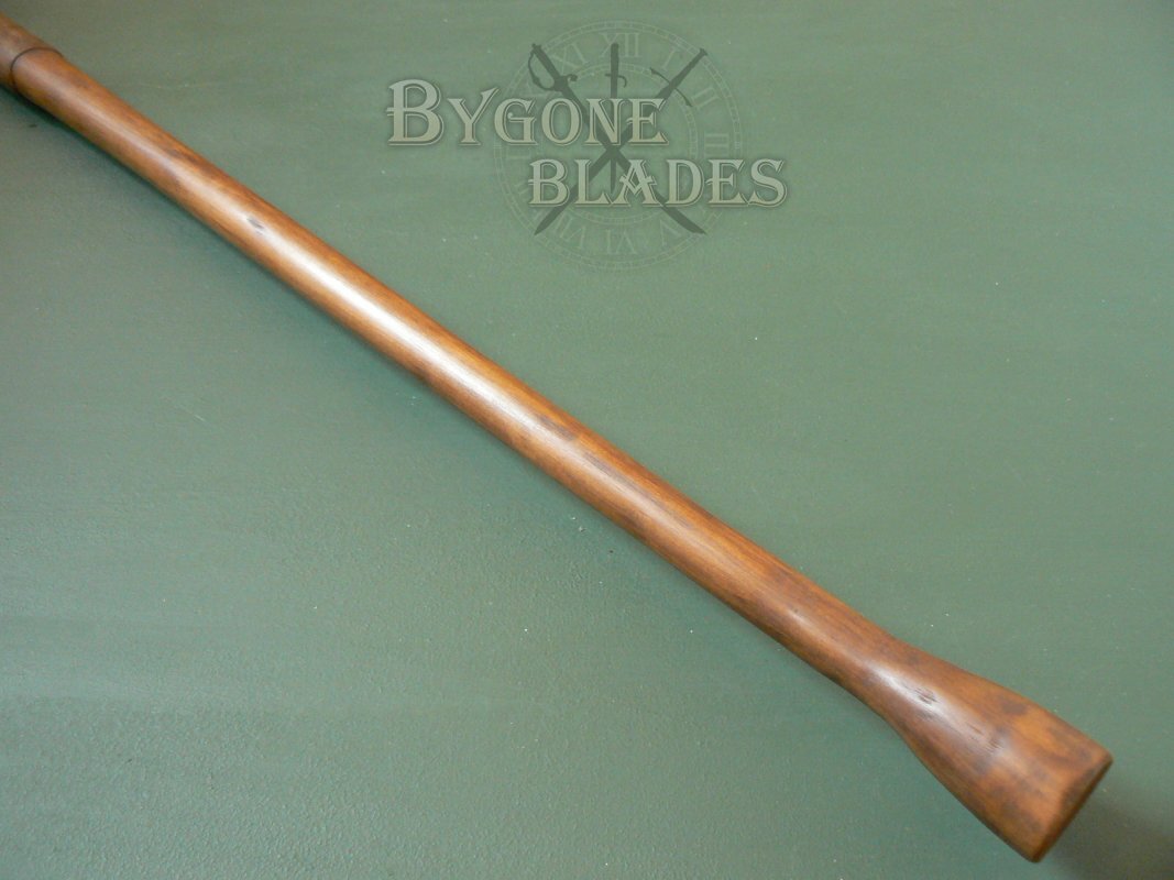 While the Zulu King was responsible for providing his warriors (Impis) with shields, the individual Zulu warrior was responsible for his own weaponry. As such, the length and breadth of a warrior’s Iklwa blade was very much a status symbol. The more steel a warrior could afford to purchase the wealthier and more important he was. The same applied to the choice of binding for the blade. Ilala palm was free to harvest, wire could be traded (but was often stolen from the newly installed telegraph system) and a cow tail could only be obtained by killing a cow. Cattle held great importance to the Zulus and cattle ownership was the indicator of an individual’s wealth and status. The quality and size of the blade coupled with the cow tail binding suggests that this was a high status weapon.