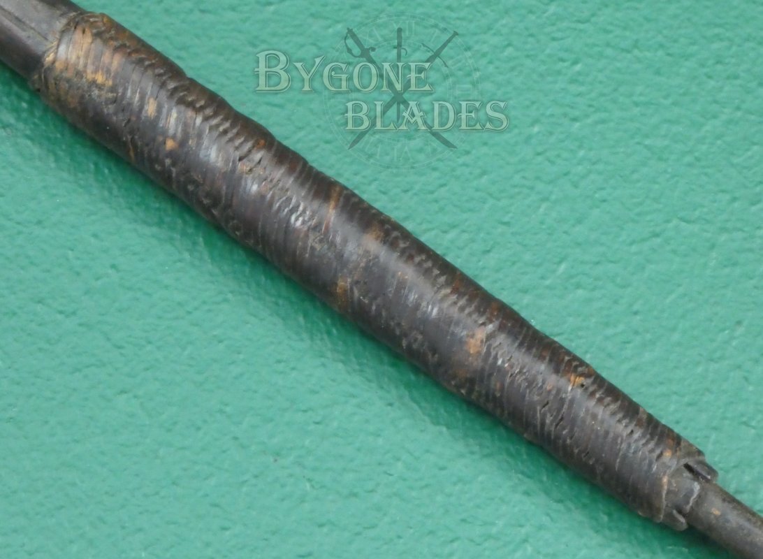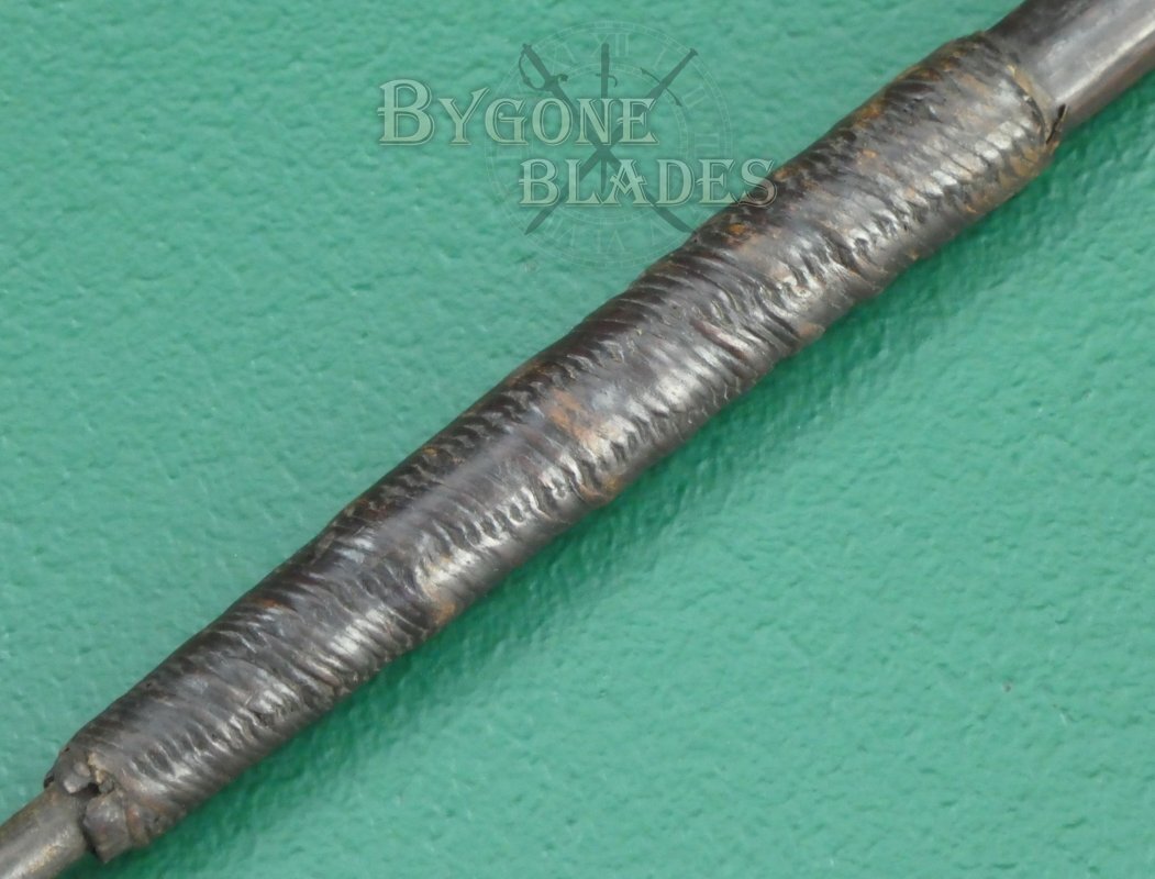 The 175mm hand forged blade (not including the tang) has a flattened diamond section with raised medial ridge. The blade is in great condition with a wonderful patina and clear forging marks that add to its character.
